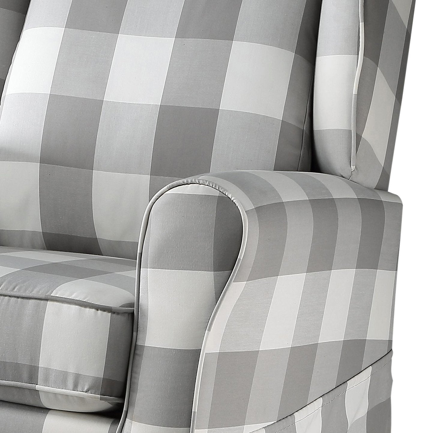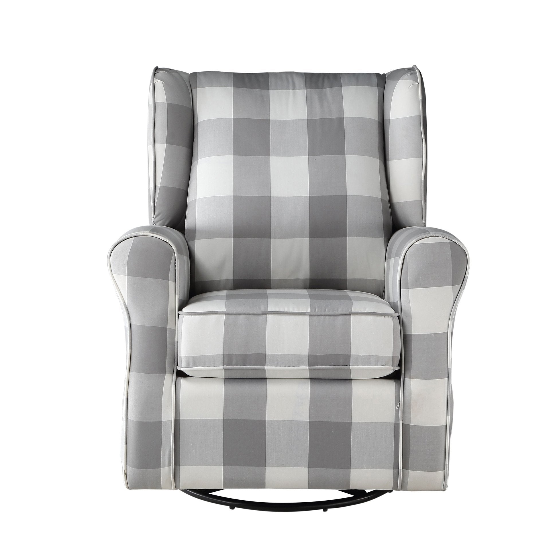 Sink into timeless comfort with this Grey and White Rolled Arm Swivel Chair with Glider. Blending classic wingback silhouette and a subtle checkerboard plaid, this accent chair offers both refined style and everyday practicality. The smooth swivel and gentle gliding motion make it ideal for reading, relaxing, or adding a cozy focal point to a living room, nursery, or den. Thoughtful details like rolled arms and removable cushion covers ensure long-lasting comfort and easy upkeep.