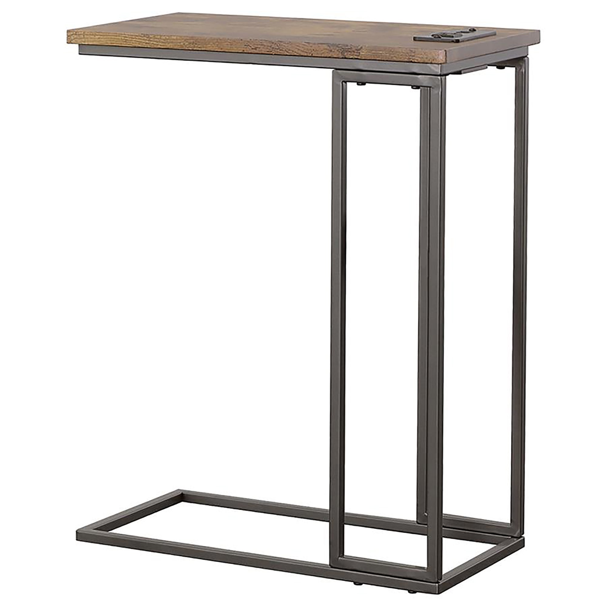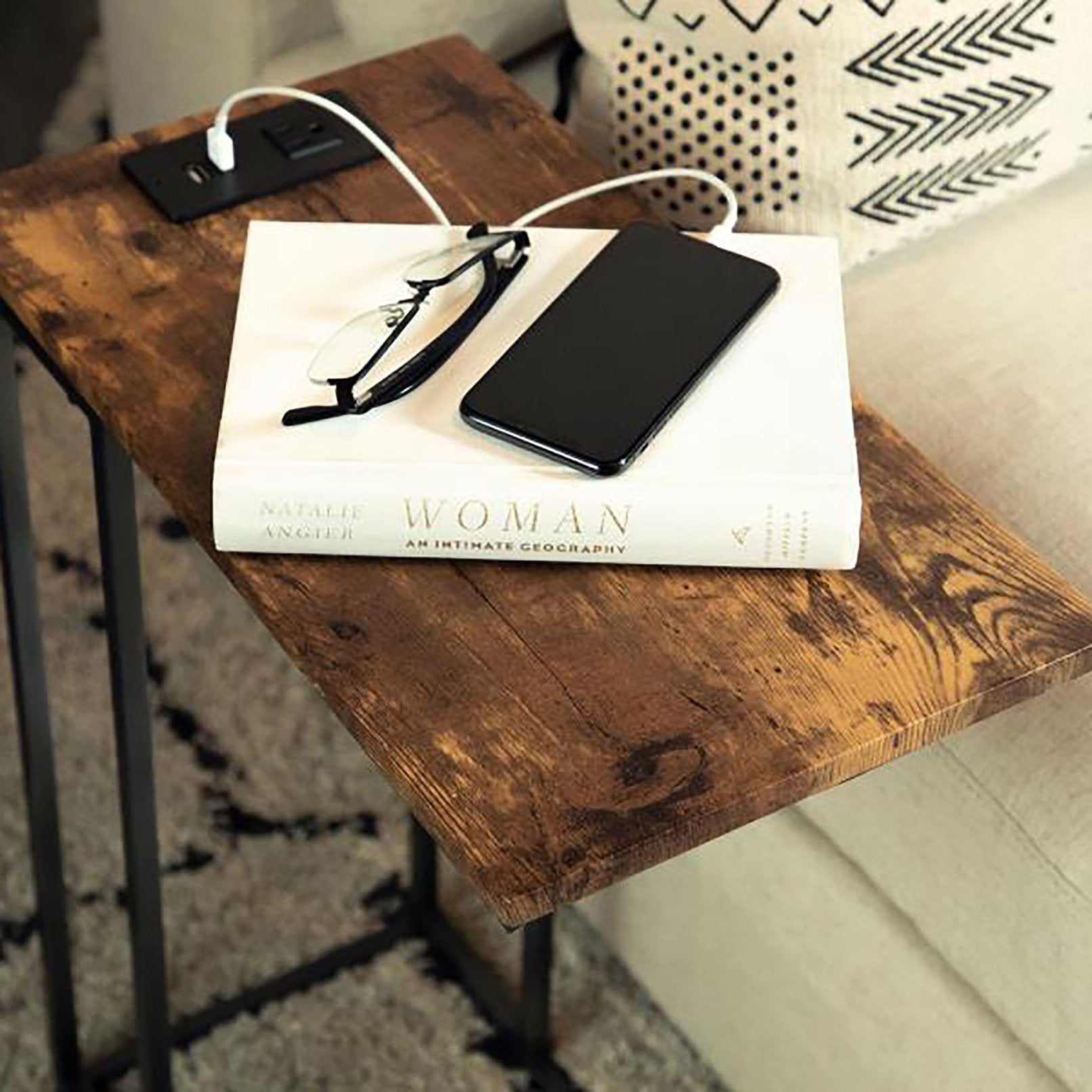Serve drinks, snacks and keep devices powered without leaving the sofa. This C‑shape snack table pairs an antique brown top with a gunmetal base for a refined industrial look, and its compact C‑frame slides easily under most seating for convenient, stable surface access. Integrated power makes it ideal for living rooms, dens, or bedside use—perfect for movie nights, working from the couch, or casual entertaining.