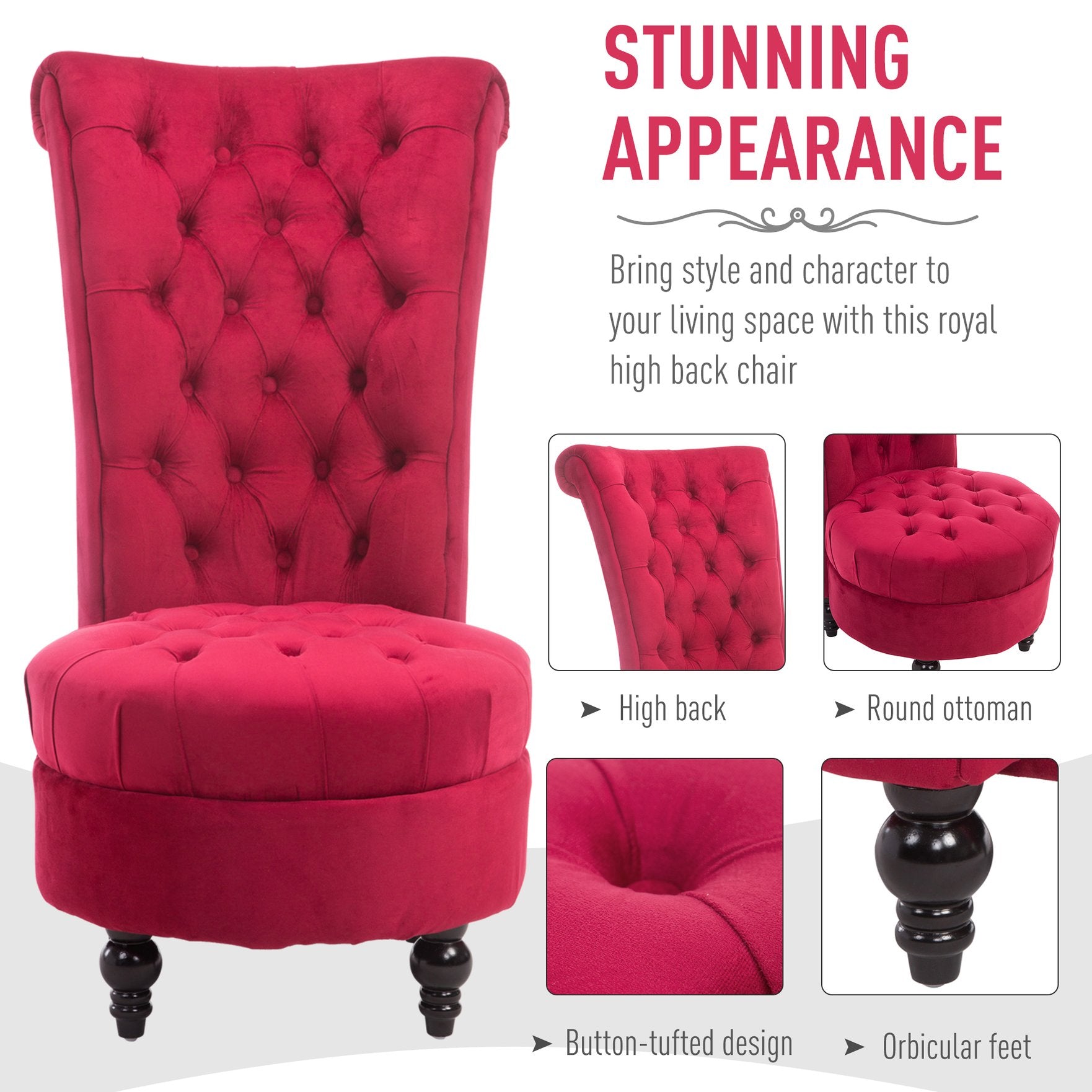- Embellished Accents: This armless accent chair is full of character from its high button-tufted backrest all the way down to its four orbicular, solid wood feet and plush round ottoman seat in between.