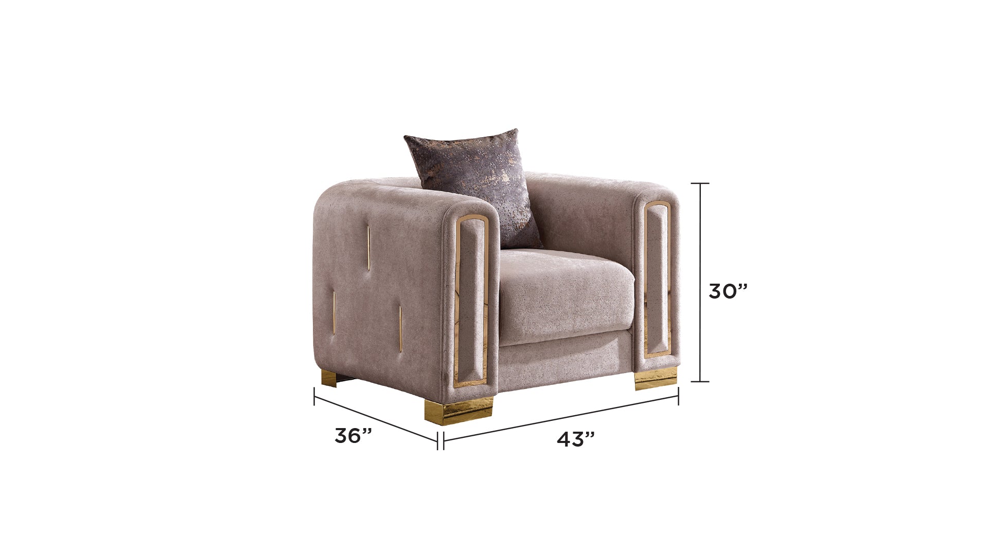 - Design Accents: Gold-finished legs and intricate gold line detailing on the arms and back for a luxurious, modern silhouette.