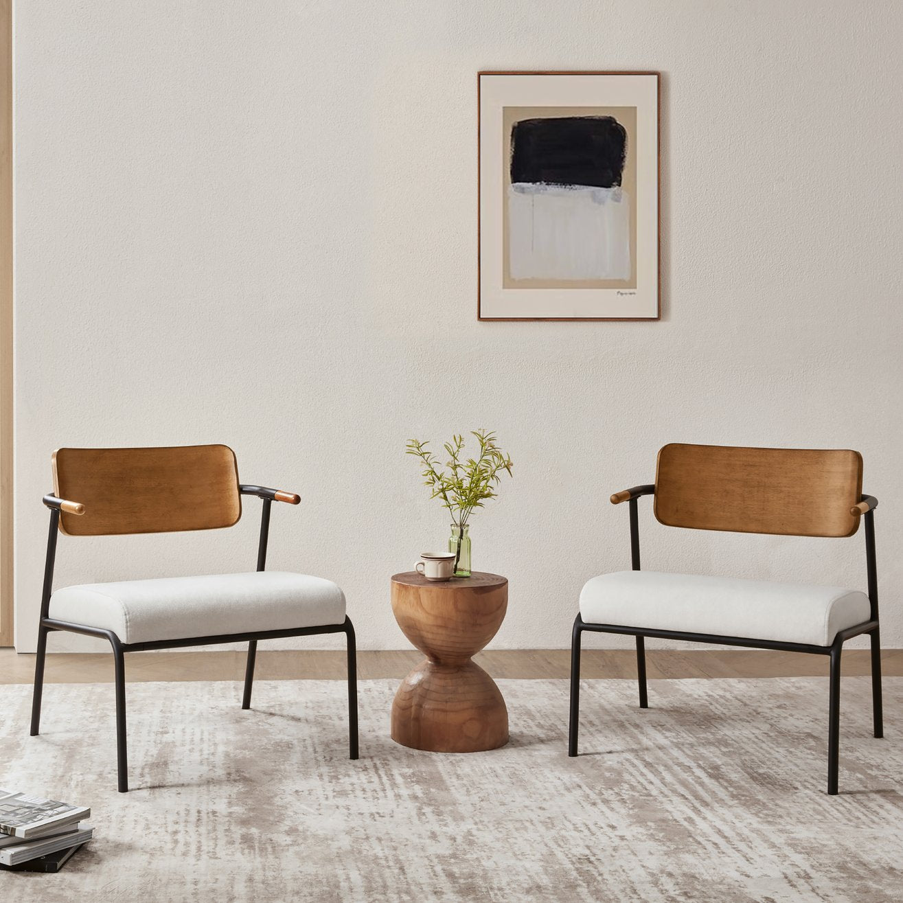 Add a touch of modern-rustic charm to your living space with this mixed-material accent arm chair. The clean cream-white polyester upholstery and matte black metal frame create a versatile silhouette that works in contemporary, farmhouse, or eclectic interiors. Designed for comfort and compact living, this chair delivers supportive seating without overwhelming smaller rooms.