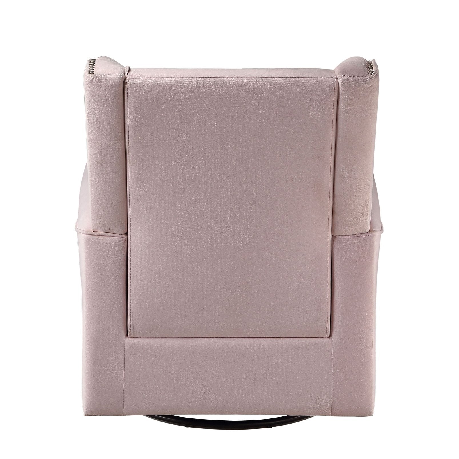 Add a touch of feminine elegance and modern comfort to your living space with this Pink Rolled Arms Swivel Chair with Nailhead Accent. Designed to be both eye-catching and functional, the chair pairs a soft pink upholstery and classic rolled arms with a smooth swivel-and-glider mechanism, making it perfect for relaxing, reading, or enjoying conversation. Nailhead trim and a removable seat cushion cover lift the design while keeping upkeep simple.