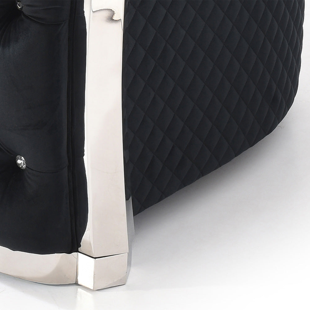 Elevate your living space with this luxurious black velvet chair that blends classic tufted elegance and modern accents. Plush cushioning and jeweled tufting deliver refined comfort, while textured diamond quilting and LED lighting add contemporary flair—perfect as a statement piece in a lounge, bedroom, or upscale reception area.