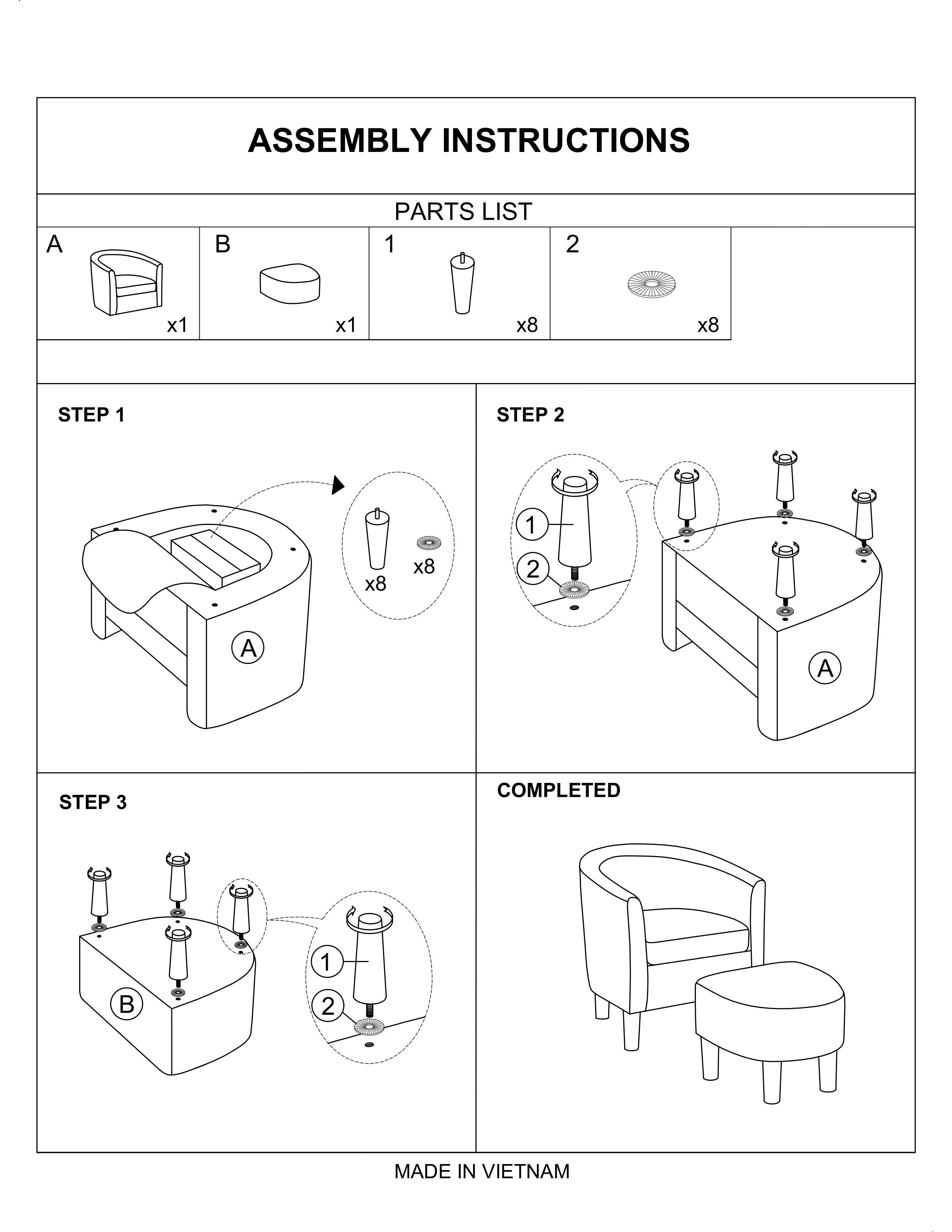 - Polyester Fiber Batting, Webbing, Hardware, Plastic Leg