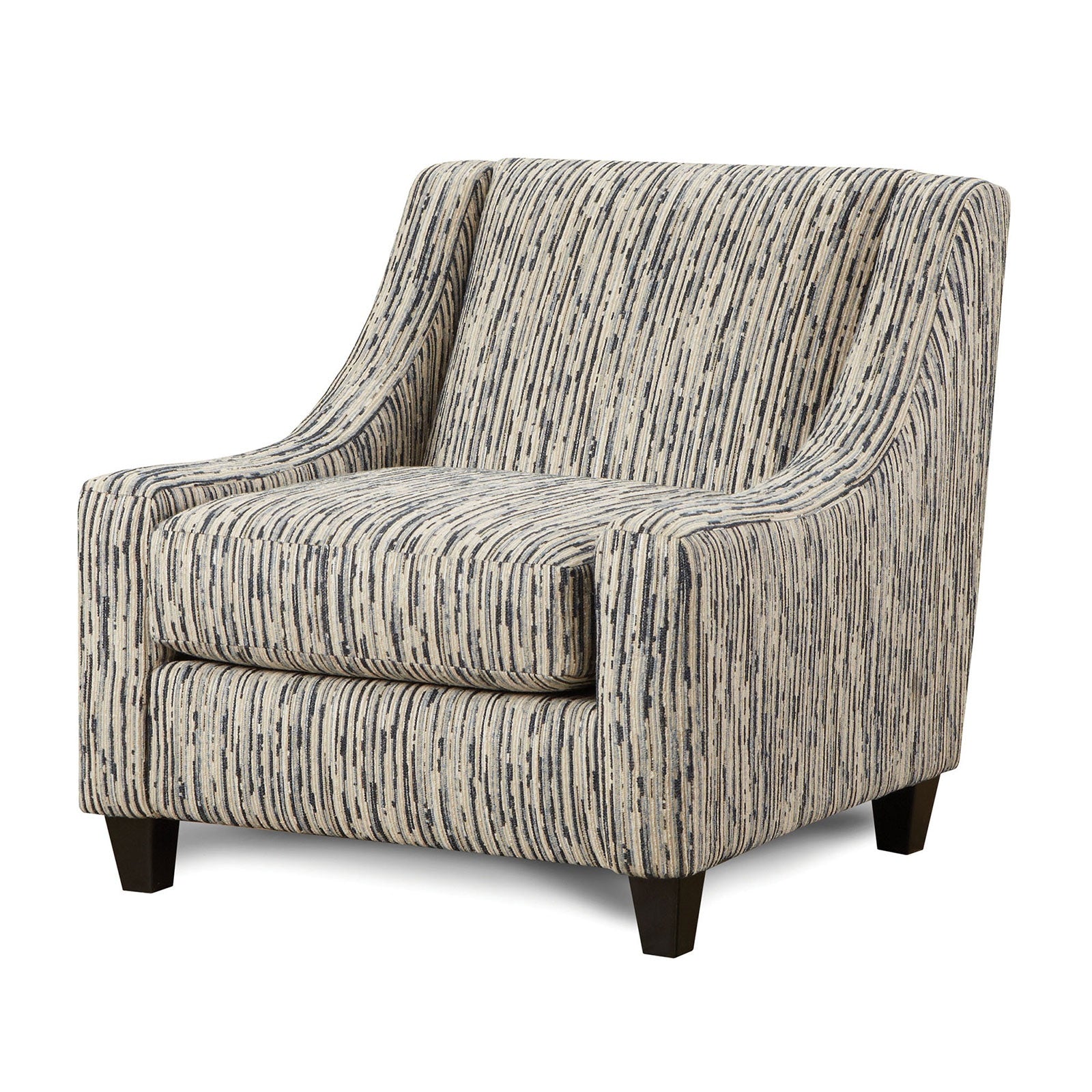 Brighten your living space with this transitional sloping-arms chair that blends modern silhouette and textured woven upholstery for understated sophistication. The muted, art-inspired stripe pattern and plush double gel foam seat deliver both visual interest and lasting comfort, while tapered dark-stained block legs and sloping track arms provide a tailored, contemporary profile that fits a variety of decors.