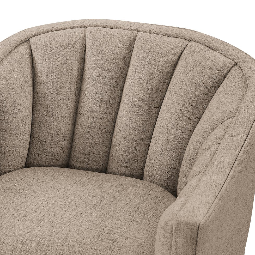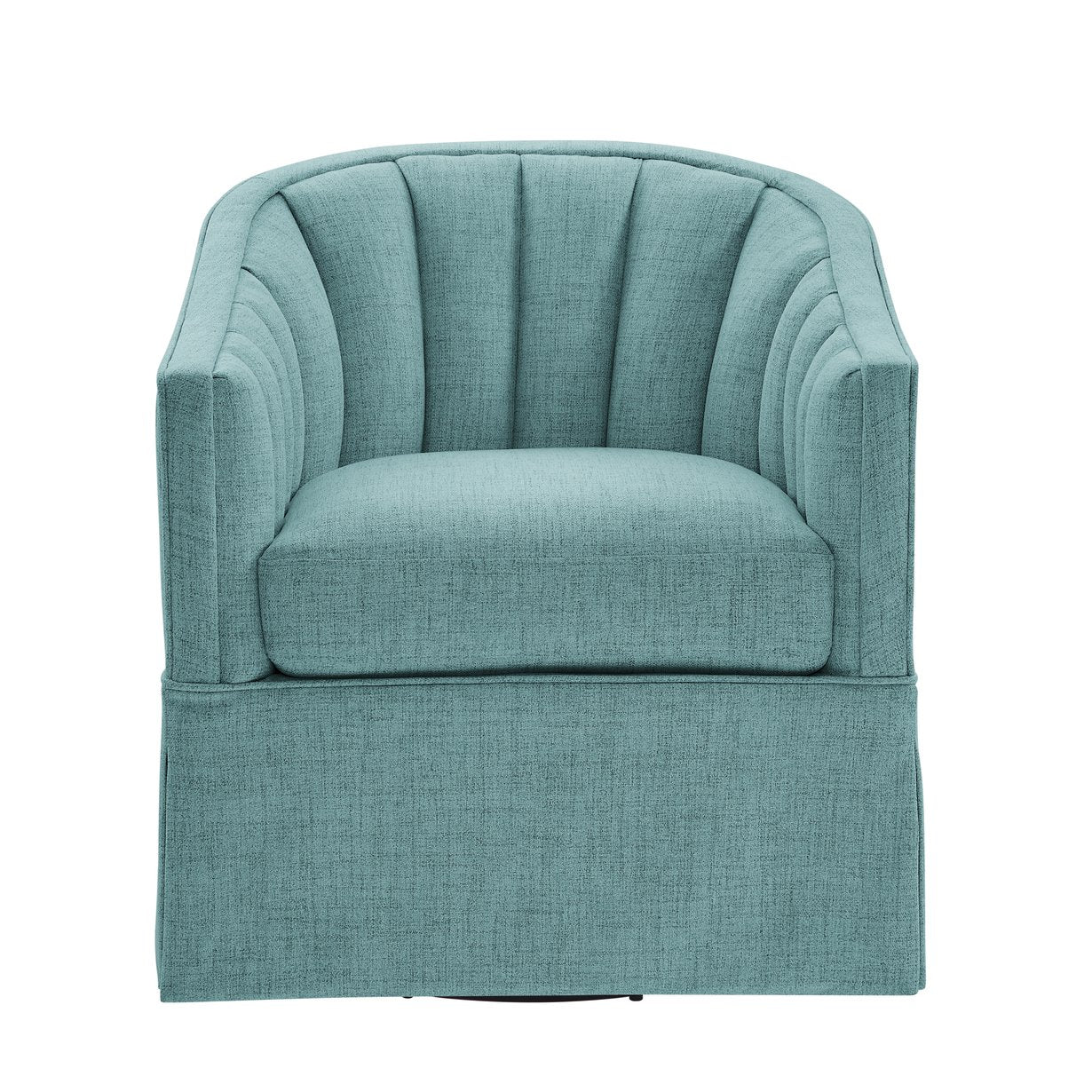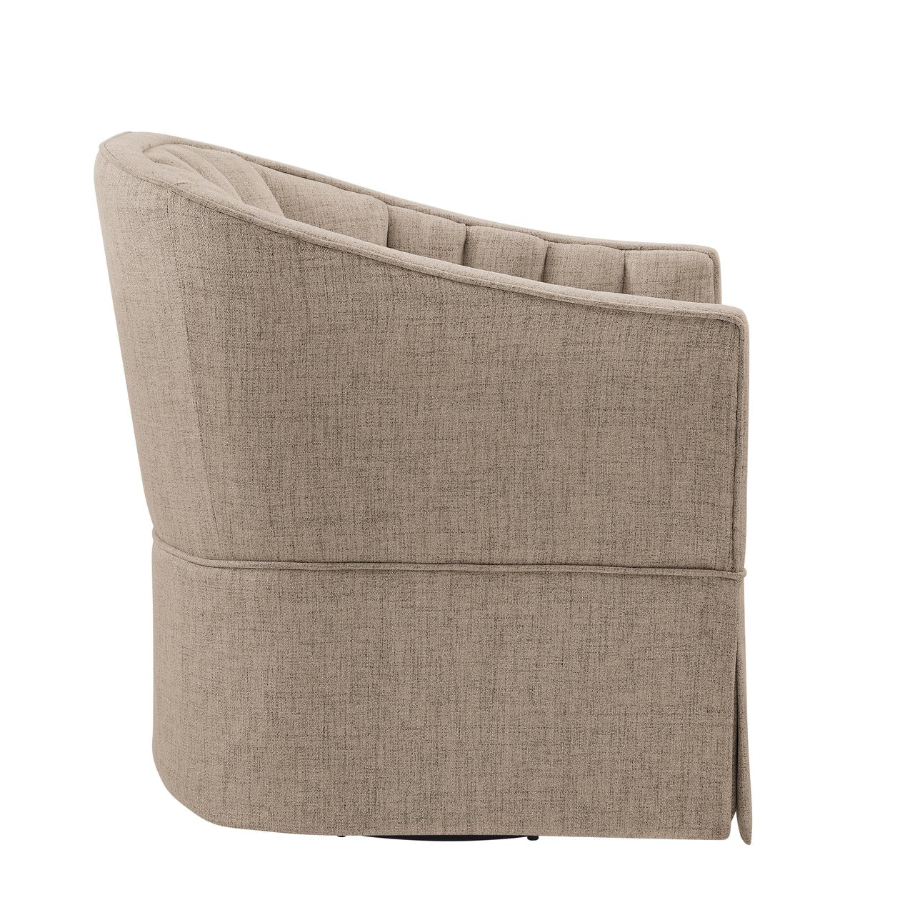 Bring relaxed coastal elegance and everyday comfort to your living room, bedroom, or reading nook with this timeless swivel accent chair. Upholstered in a soft, hemp-like polyester fabric and finished with a tailored skirt, it pairs classic silhouette details—like a vertically channel-tufted back and gently flared arms—with durable construction and a smooth 360° swivel for modern livability.