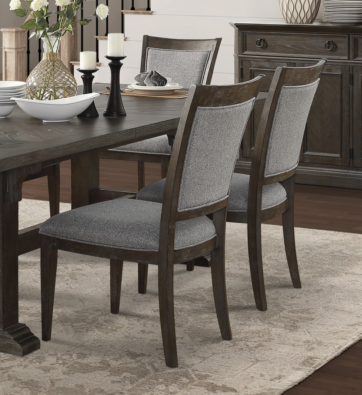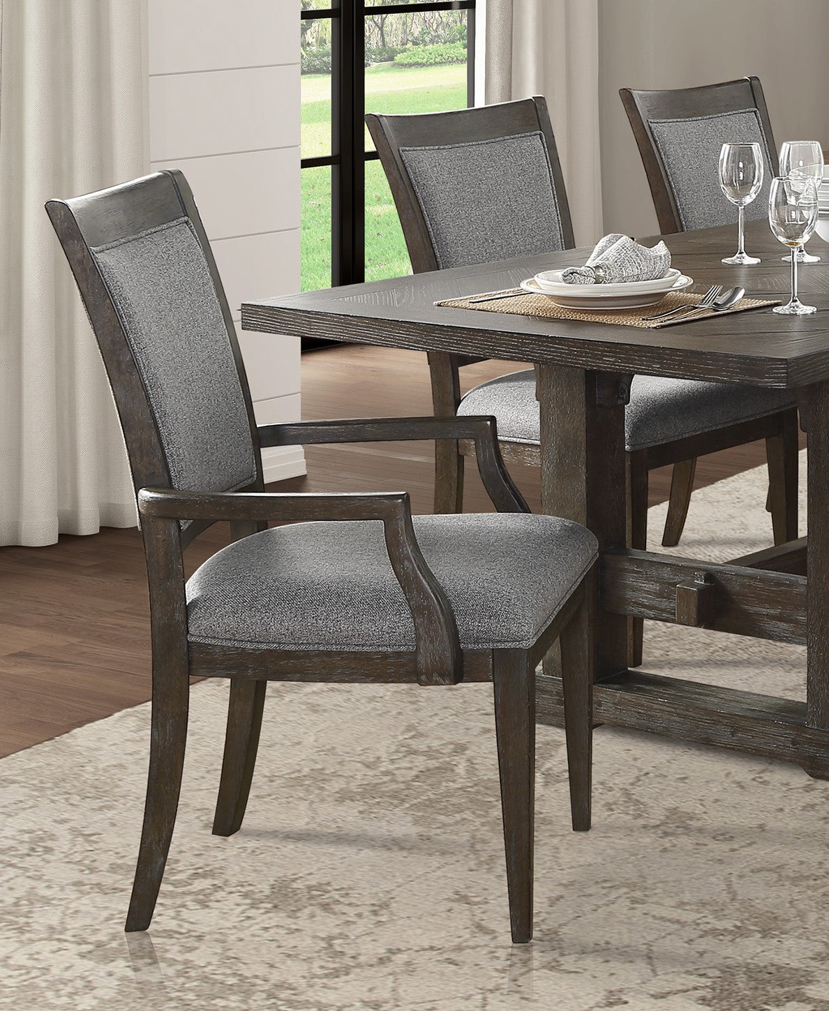 Bring effortless style and everyday comfort to your dining space with this set of two transitional armchairs. Combining a driftwood brown ash veneer frame with soft gray fabric upholstery, these chairs balance rustic warmth and modern lines for a versatile look that complements a variety of interiors. Generously padded seats and supportive backs make them ideal for long dinners, casual work-from-home sessions, or additional seating in living and guest rooms.