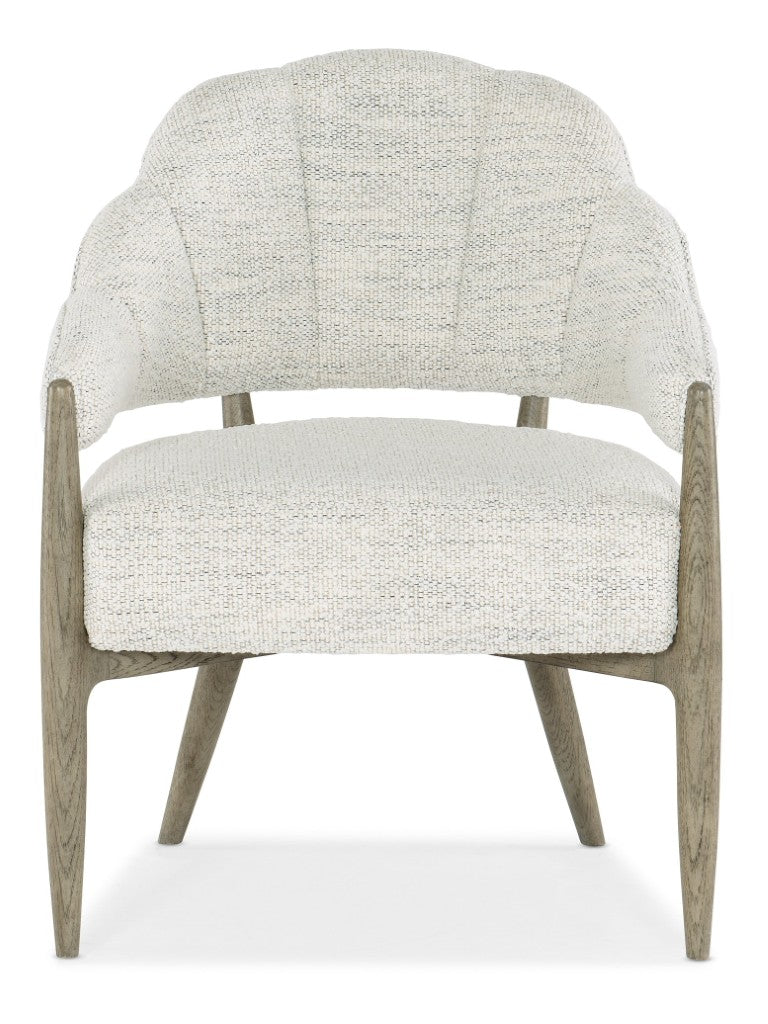 Inspired by the layered beauty of Linville Falls, this Bynum Bluff Accent Chair blends sculptural form with everyday comfort. Its channeled, scalloped back and gently upholstered arms create an inviting silhouette, while neutral Merino Cotton fabric and a smoked-gray wood frame offer versatile, calming style for modern or transitional interiors.