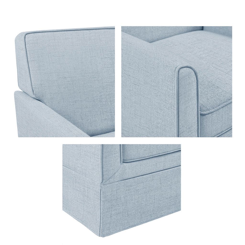 - Design: Classic track arm silhouette with skirted base and piping detail for a structured, tailored appearance.