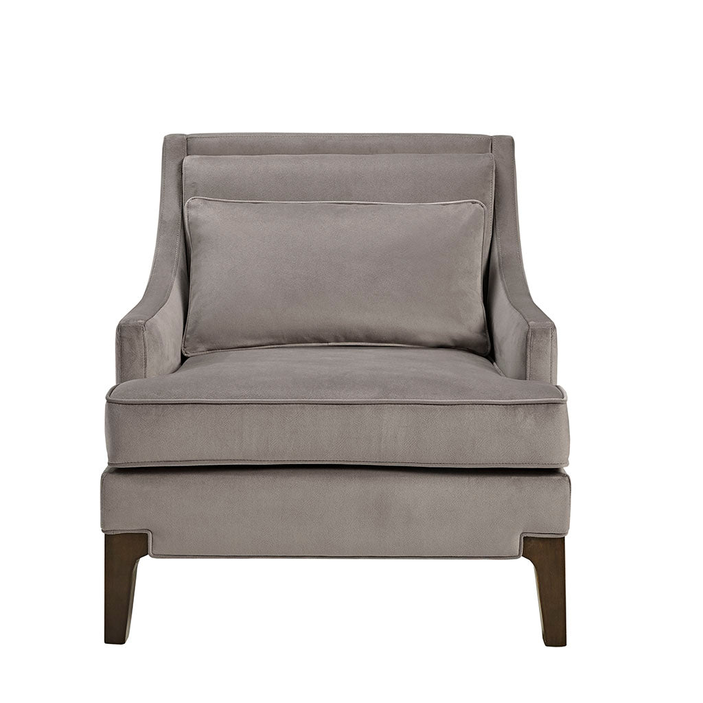 - One Size 1 Accent Chair:30.75"W x 32.25"D x 32.5"H 1 Pillow:23.5"L x 13"W Seat Dimension:30.75"W x 23.25"D x 17.5"H Seat Cushion Thickness:6"T Arms Size:24"W x 20.5"H Front Legs Upper Size:2.75"W x 2.75"D Front Legs Bottom Size:1.5"W x 1.5"D Front Legs Height:7.5"H Back Legs Upper Size:3"W x 1.5"D Back Legs Bottom Size:1.5"W x 1.5"D Back Legs Height:7.5"H Back Rest Size:25"W x 15"H Maximum Weight Capacity (Seating):300 lbs