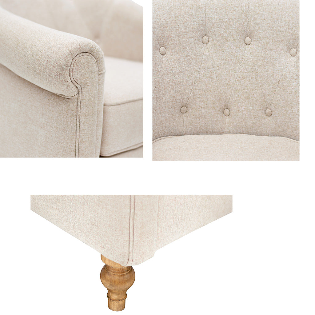 - Classic styling: Rolled arms, deep button tufting on the back, and turned front legs deliver timeless elegance.