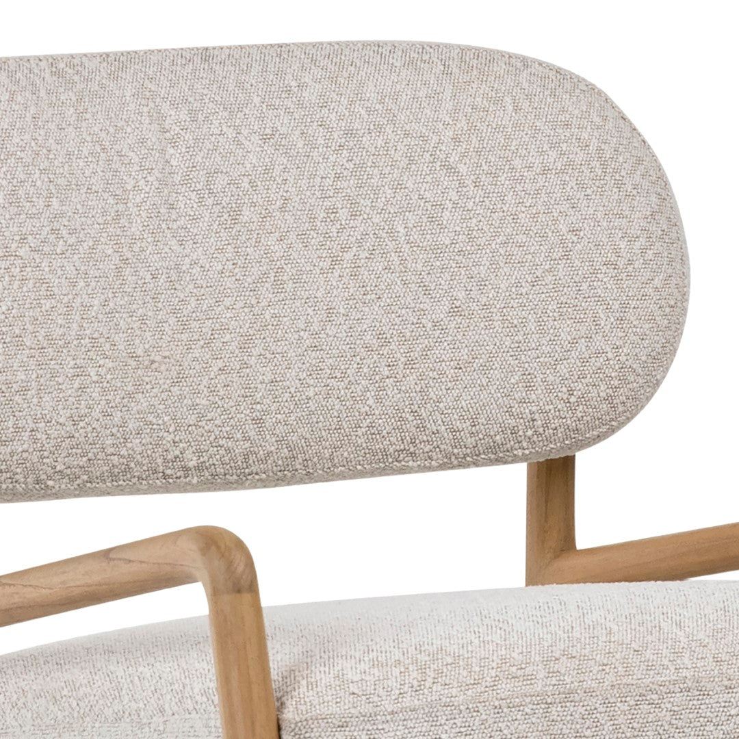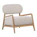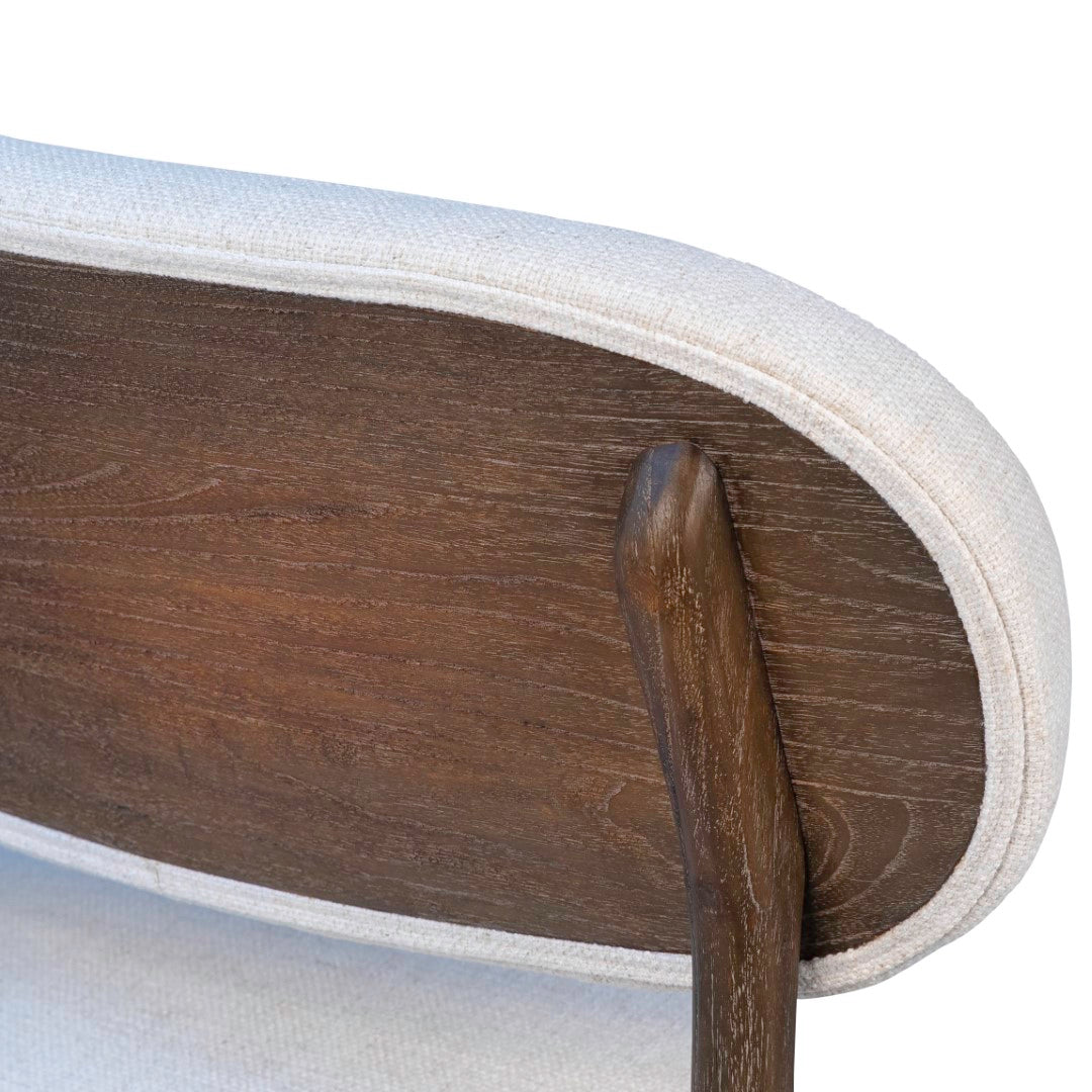 - Short Description: Modern Mindi Wood and Cotton Blend Upholstered Occasional Chair in a Dark Wood Stain and White Fabric