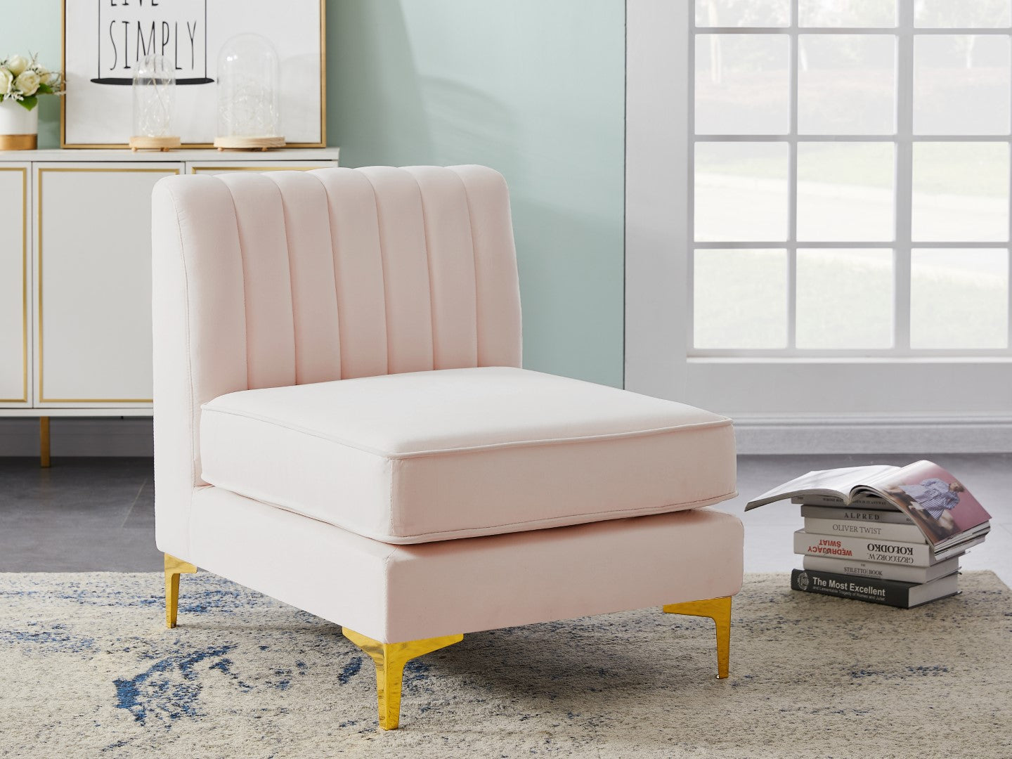- Material: Velvet / Engineered Wood / Metal / Foam
