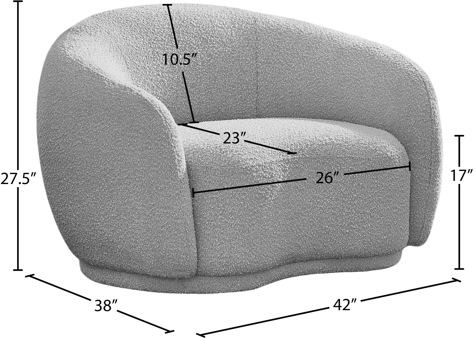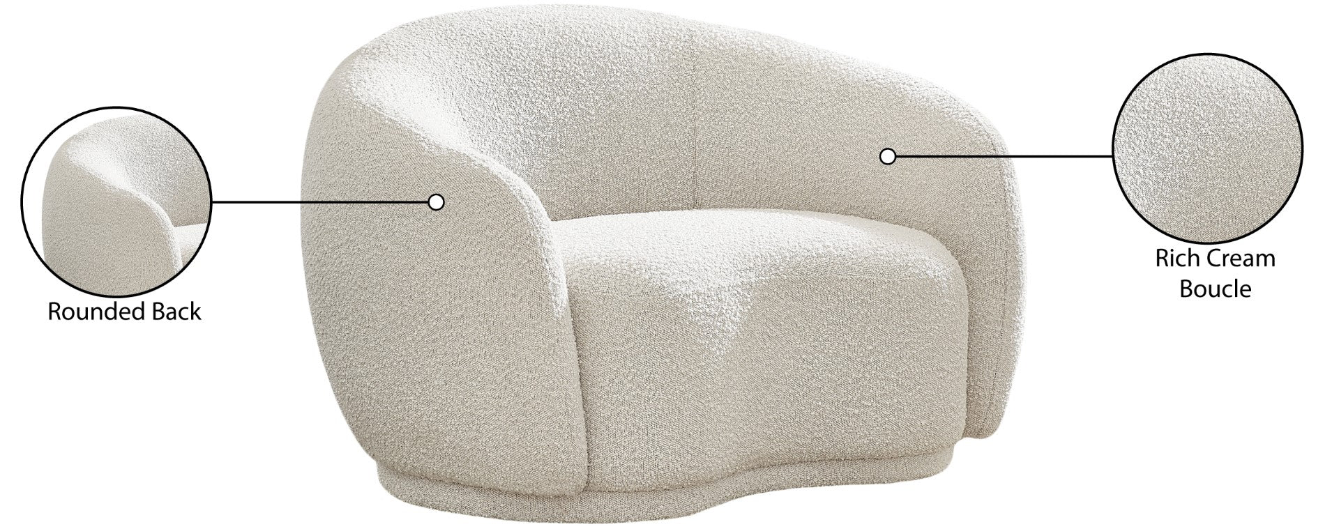 - Material: Boucle Fabric / Engineered Wood / Foam