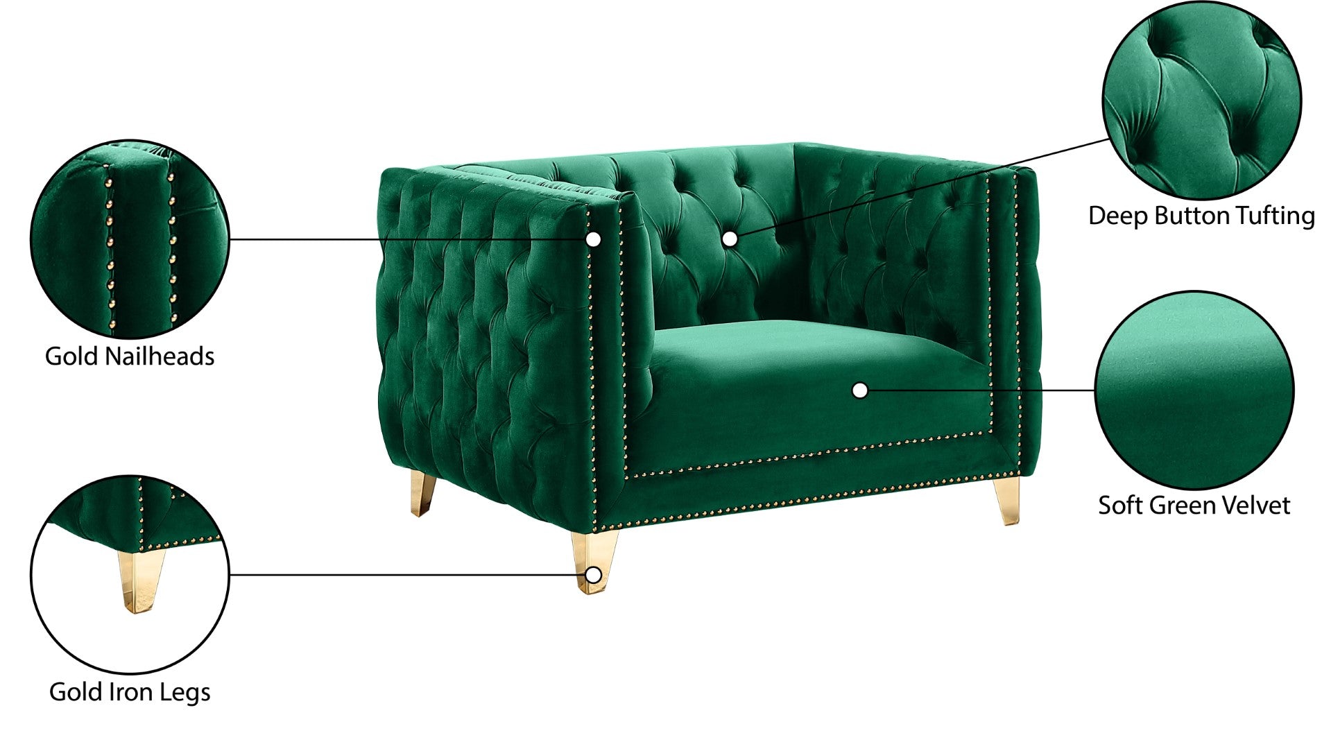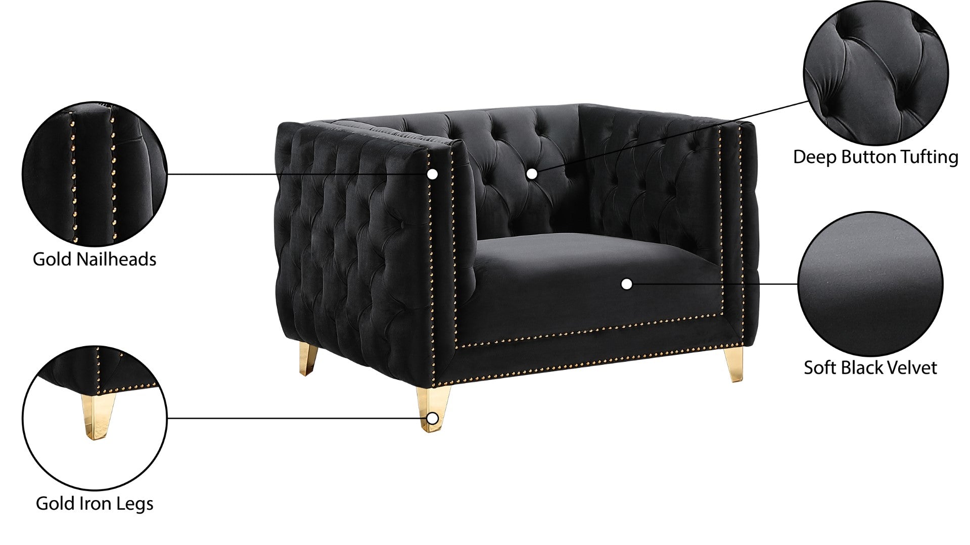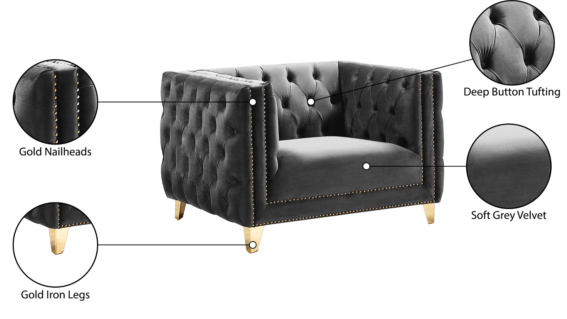 - Material: Velvet / Engineered Wood / Iron / Foam