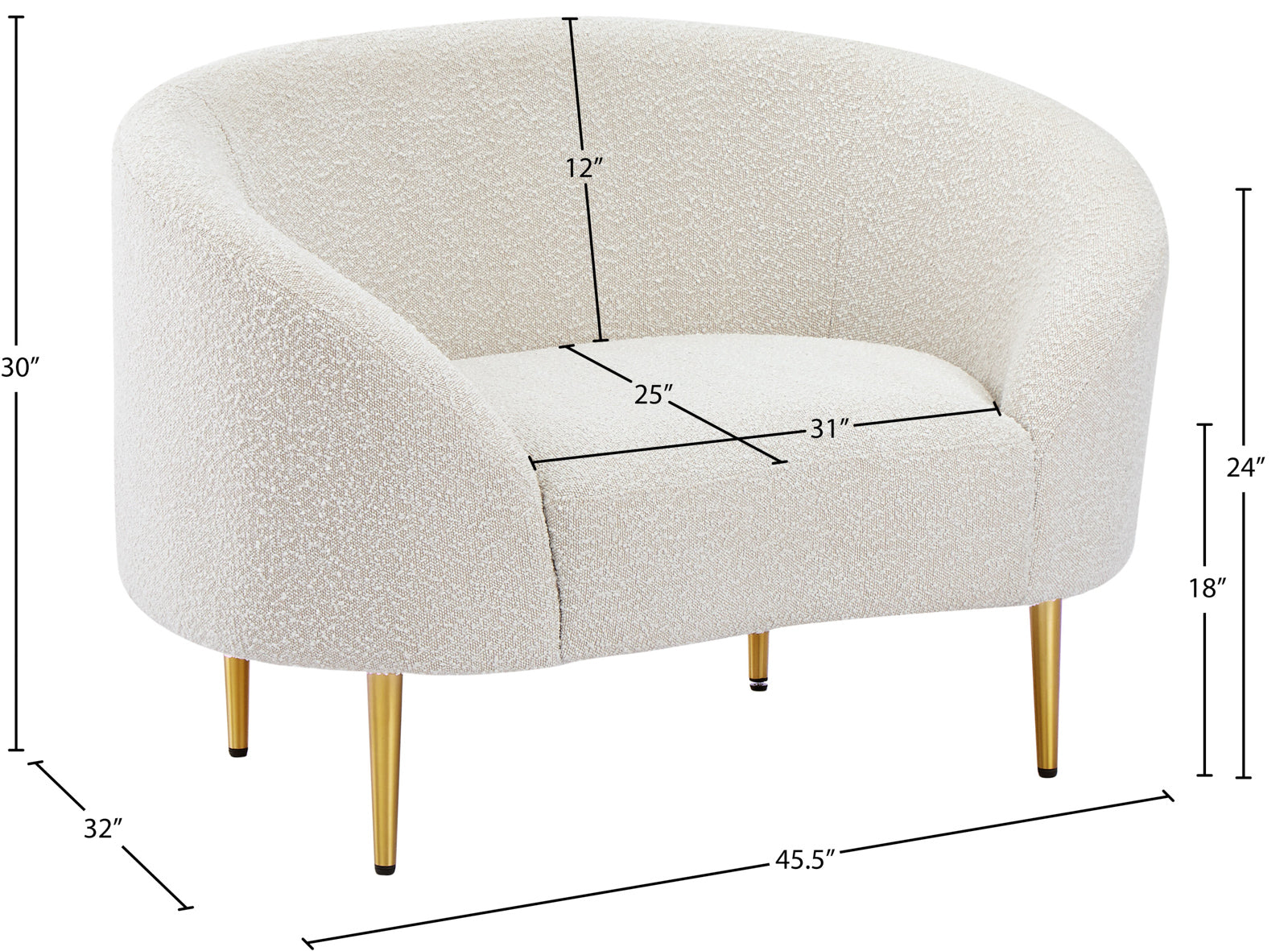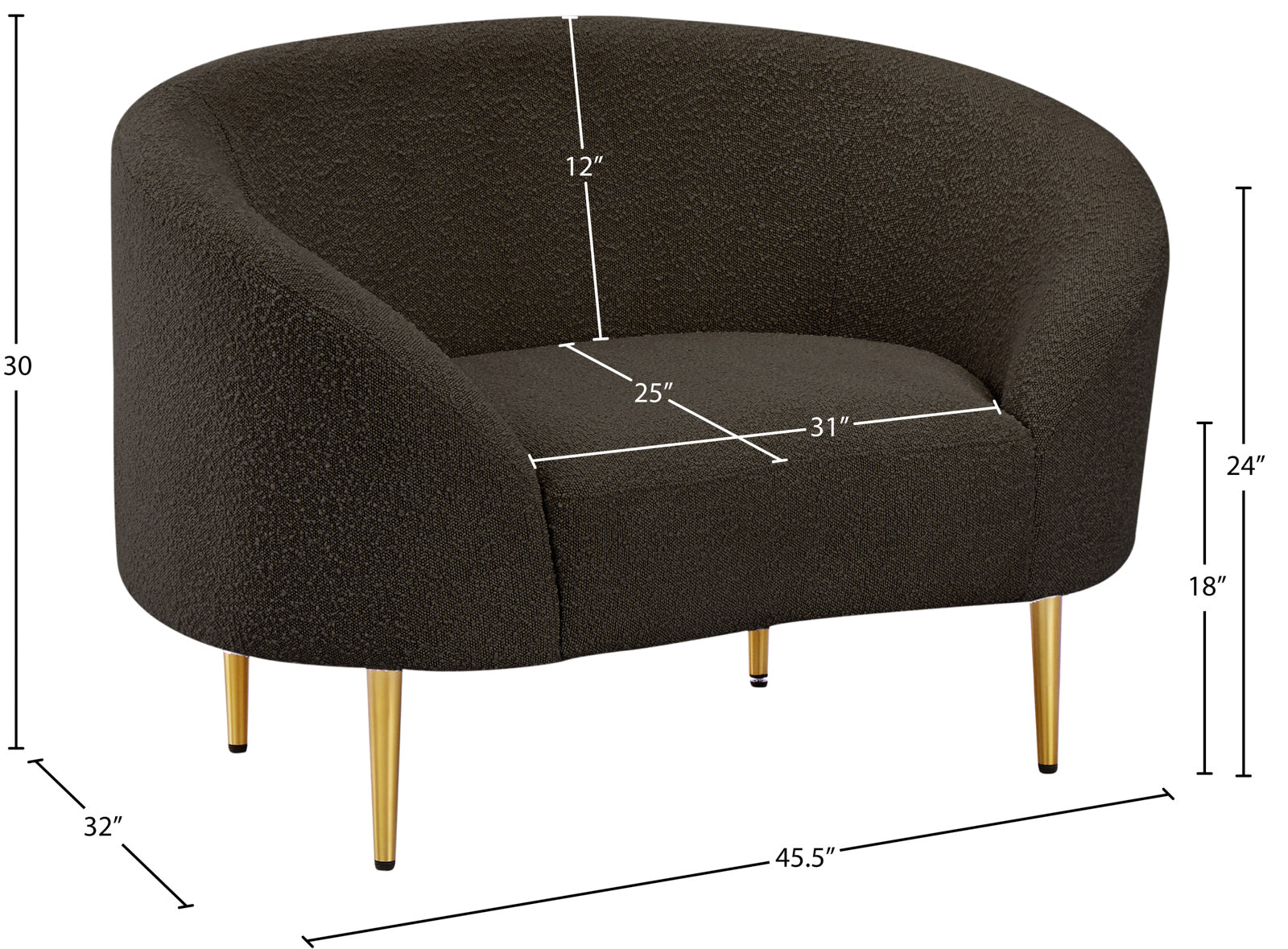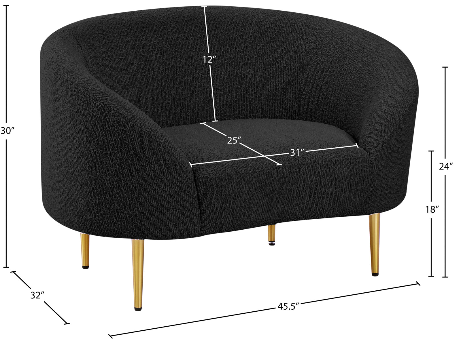 - Dimensions: 477Black-C Ritz Black Boucle Fabric Chair - 45.5" W x 32" D x 30.5" H