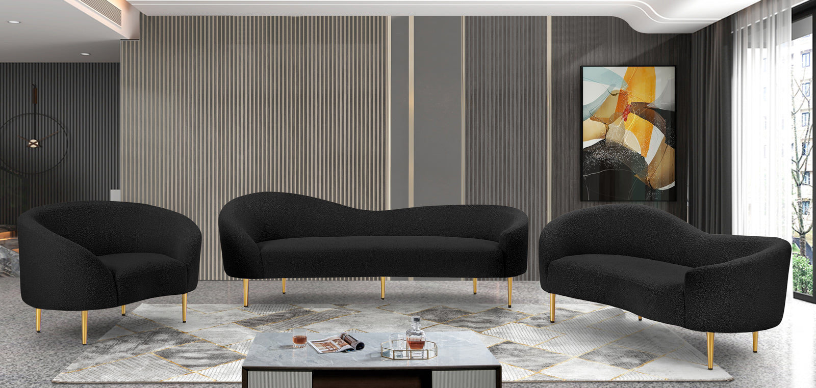 - Color: 477Black-C Ritz Black Boucle Fabric Chair - Black Boucle Fabric
