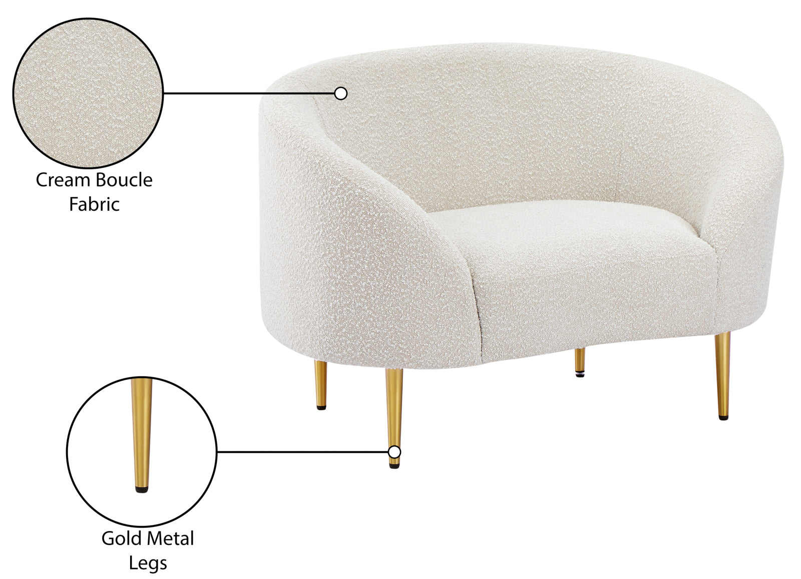 - Material: 477Black-C Ritz Black Boucle Fabric Chair - Boucle Fabric / Eucalyptus Wood / Plywood / Foam with Brushed Gold