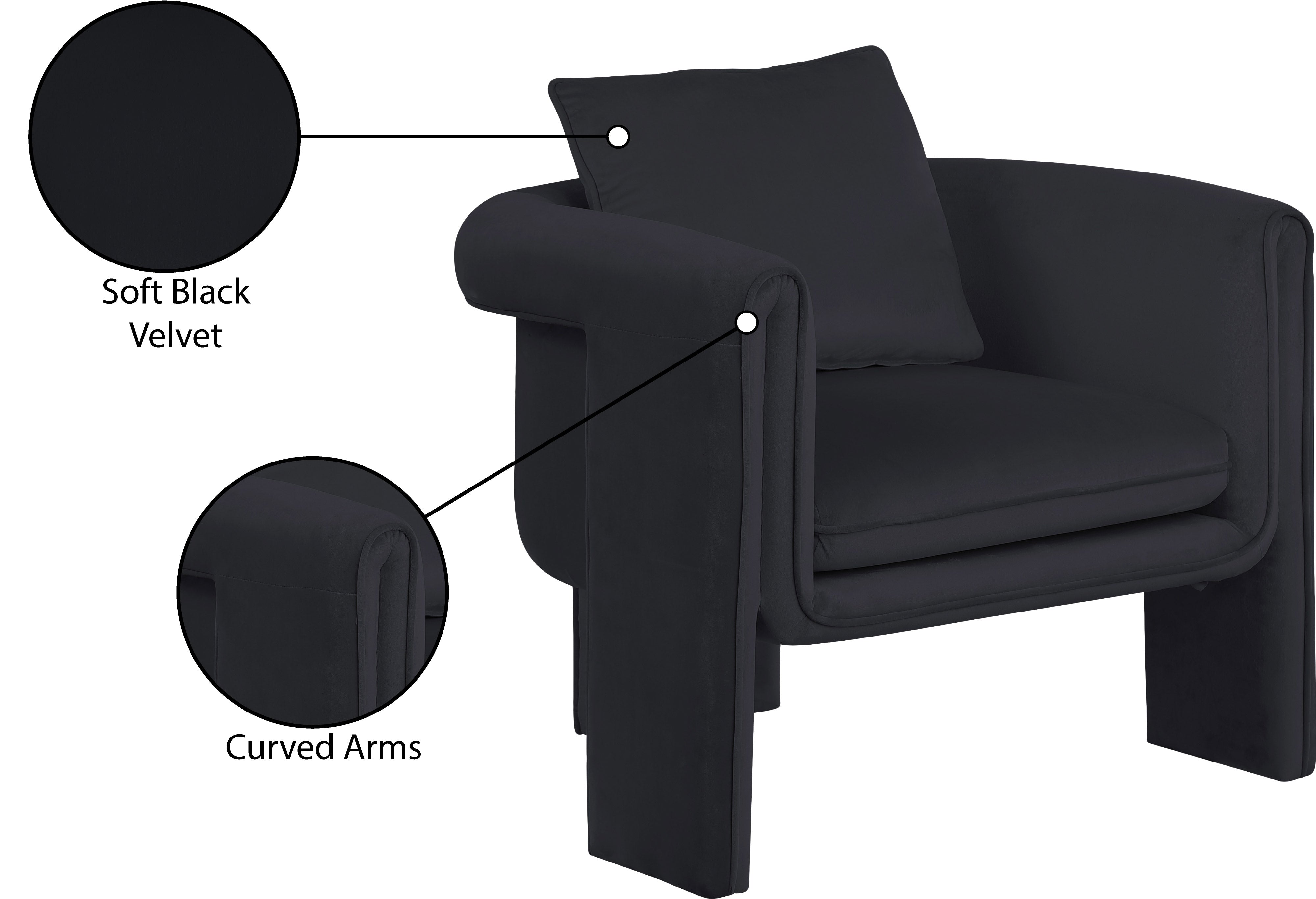 - Dimensions: 424Black Sloan Black Velvet Accent Chair - 34.5" W x 30" D x 33" H