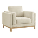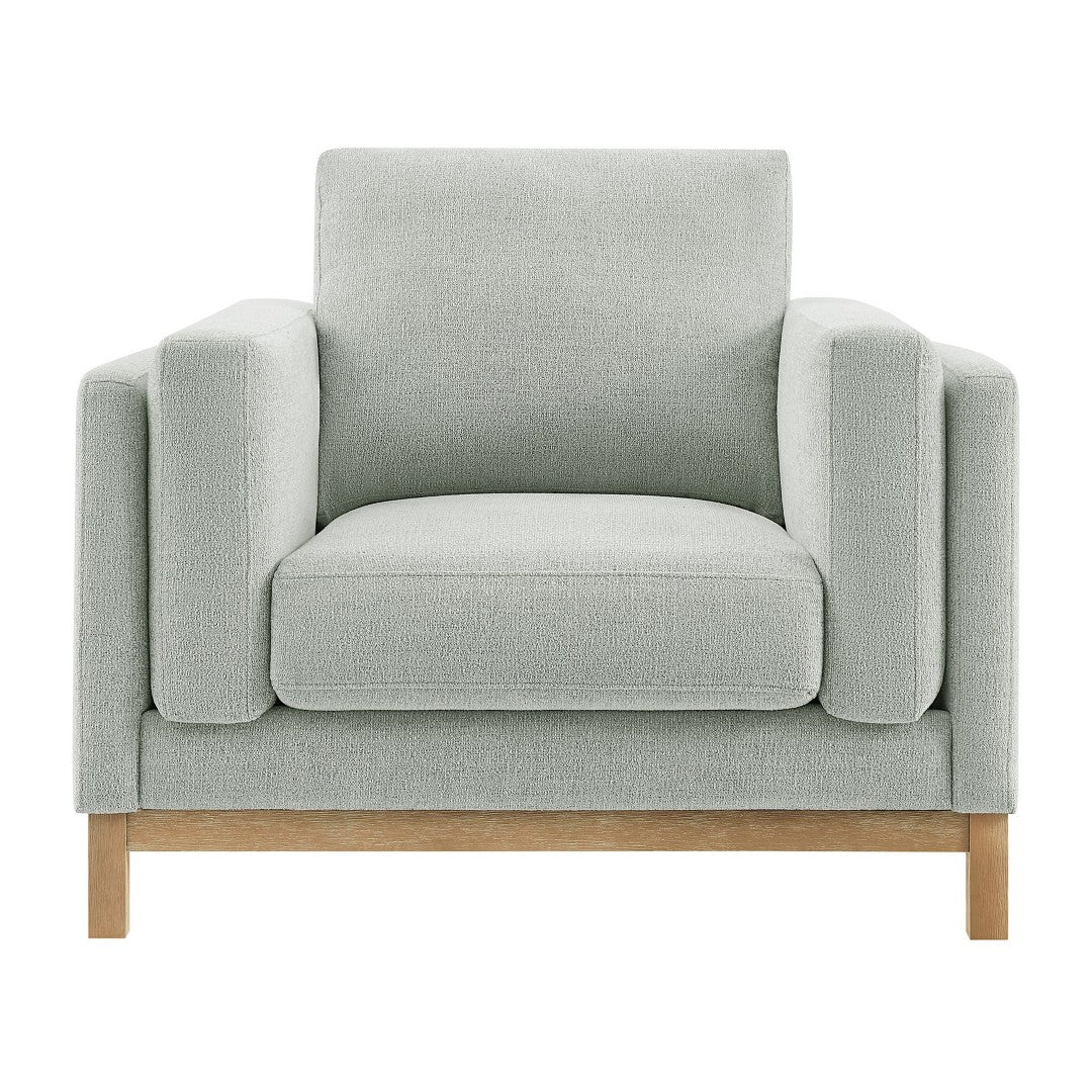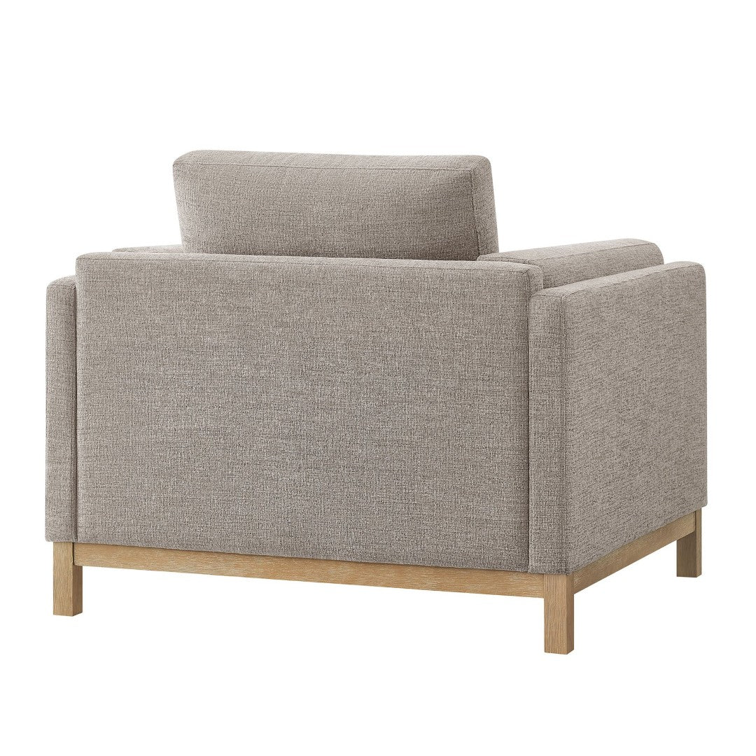 Experience timeless comfort and tailored style with the Roscoe Fabric Armchair. Thoughtfully designed to blend American-traditional lines with modern sensibility, this versatile accent chair features plush cushions, durable support, and a refined weathered wood base—making it an elegant addition to living rooms, bedrooms, or reading nooks.