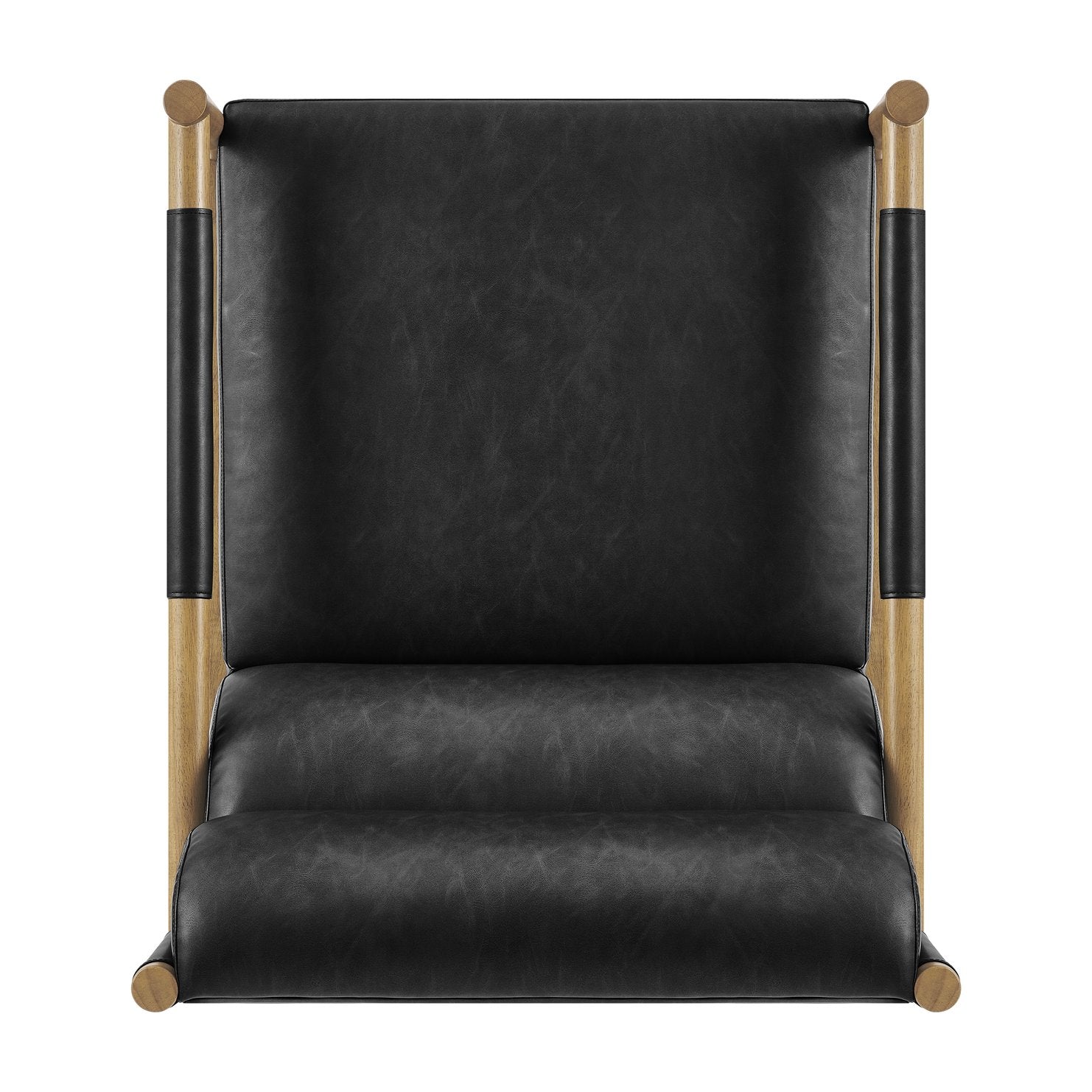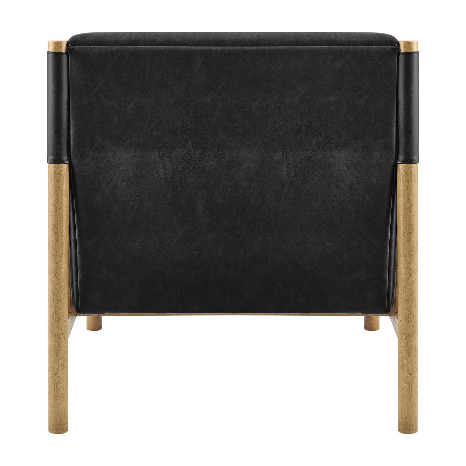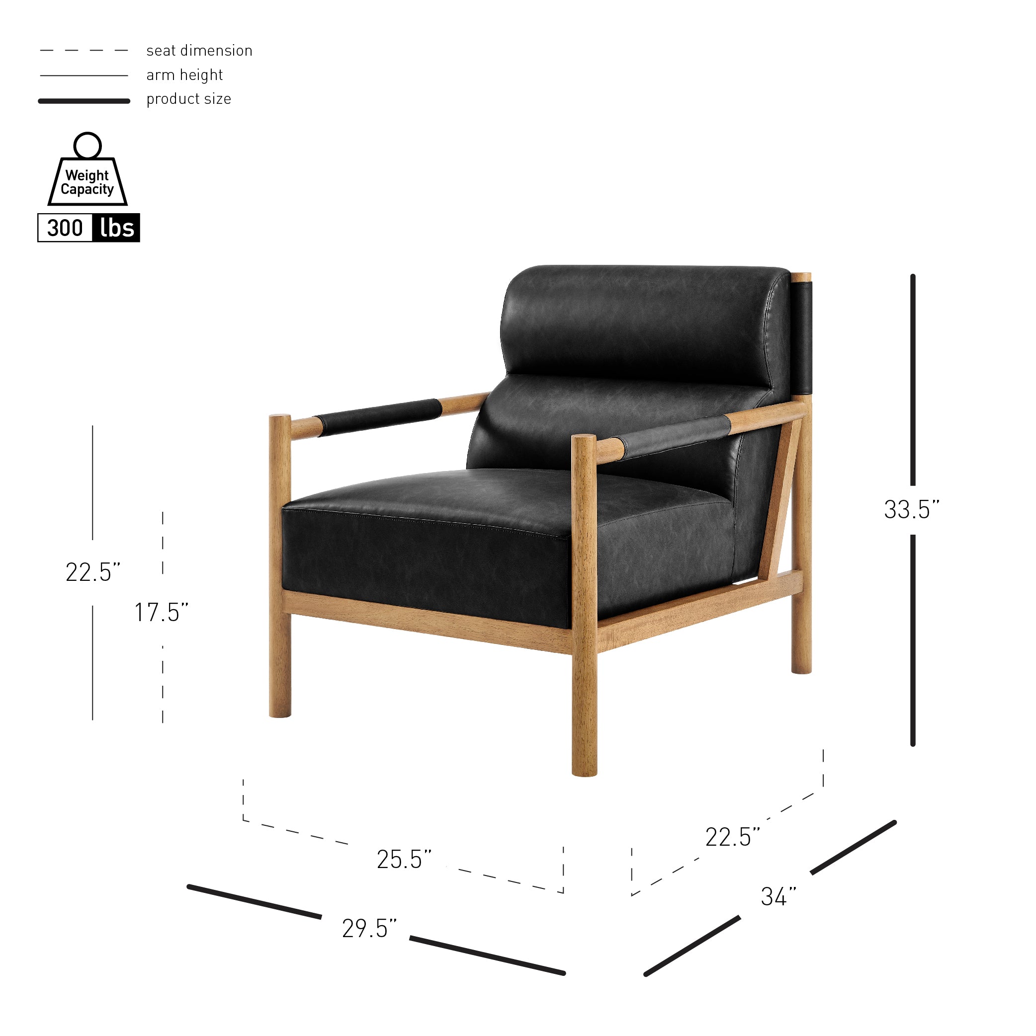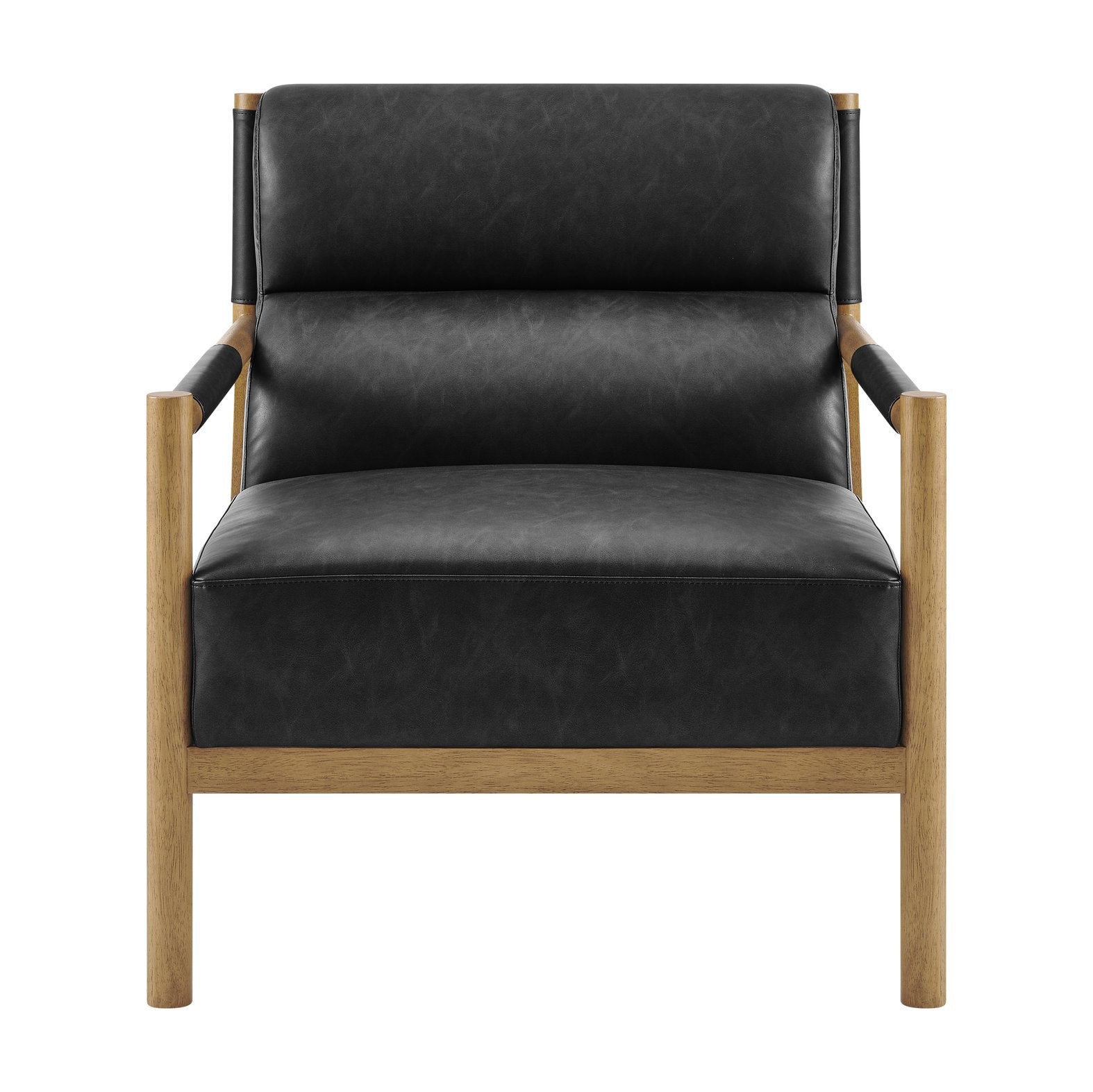 - This piece highlights clean mid-century lines with elegant wood framing and high-quality polyurethane (PU) upholstery. Matching fabric arm bands add a charming detail, while the high-density foam cushion provides plush comfort for hours of lounging. Plastic glides are included for floor protection.
