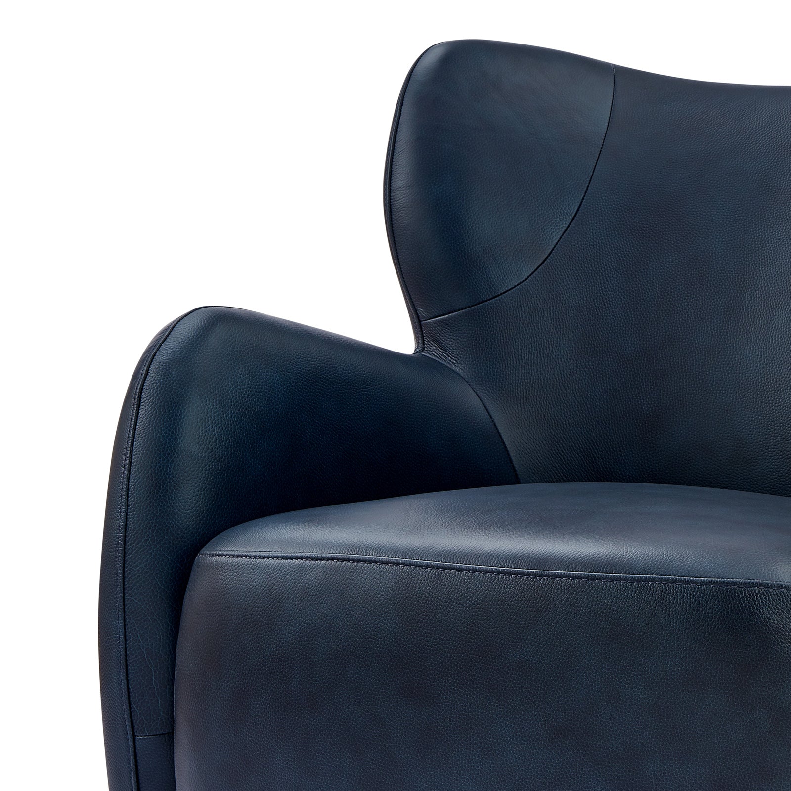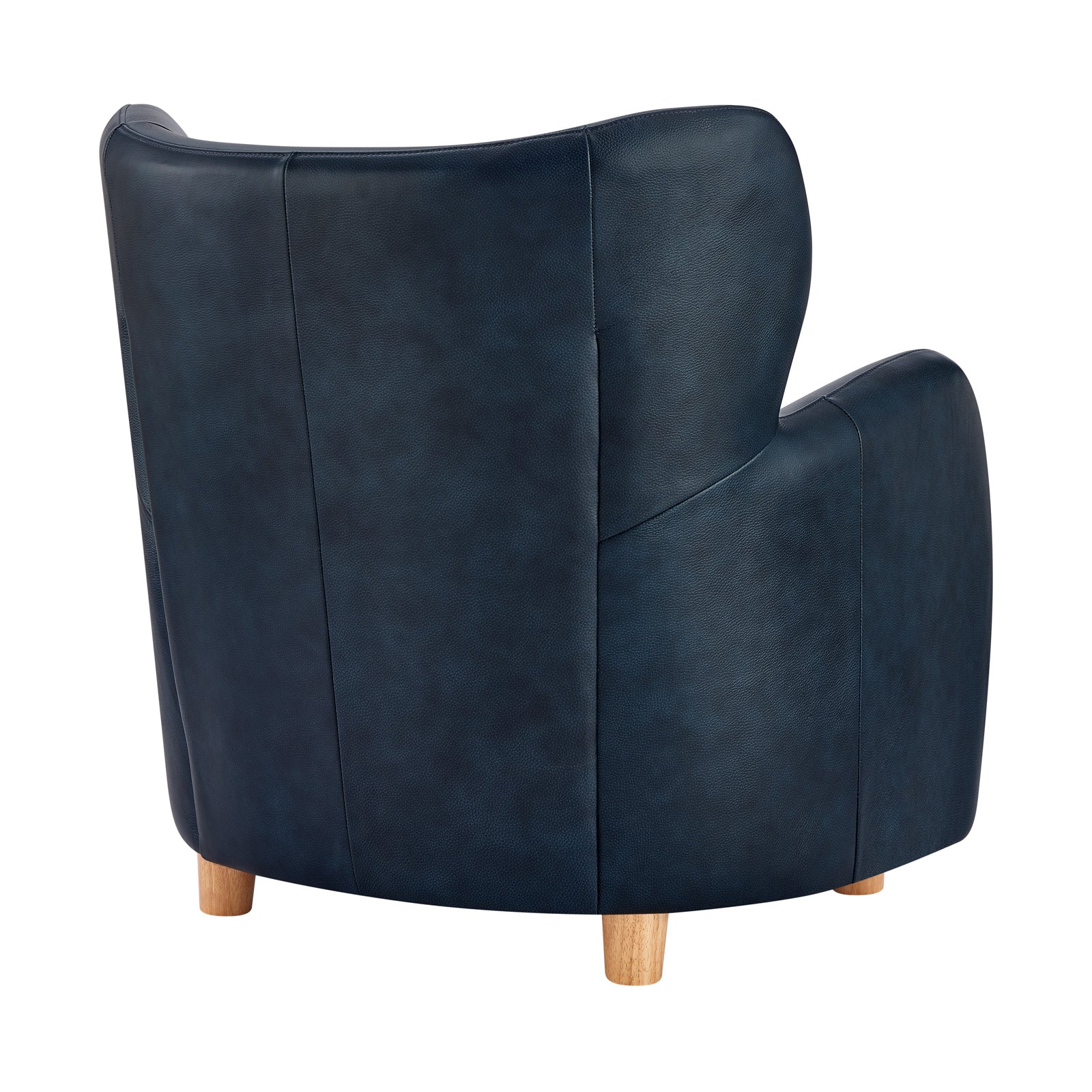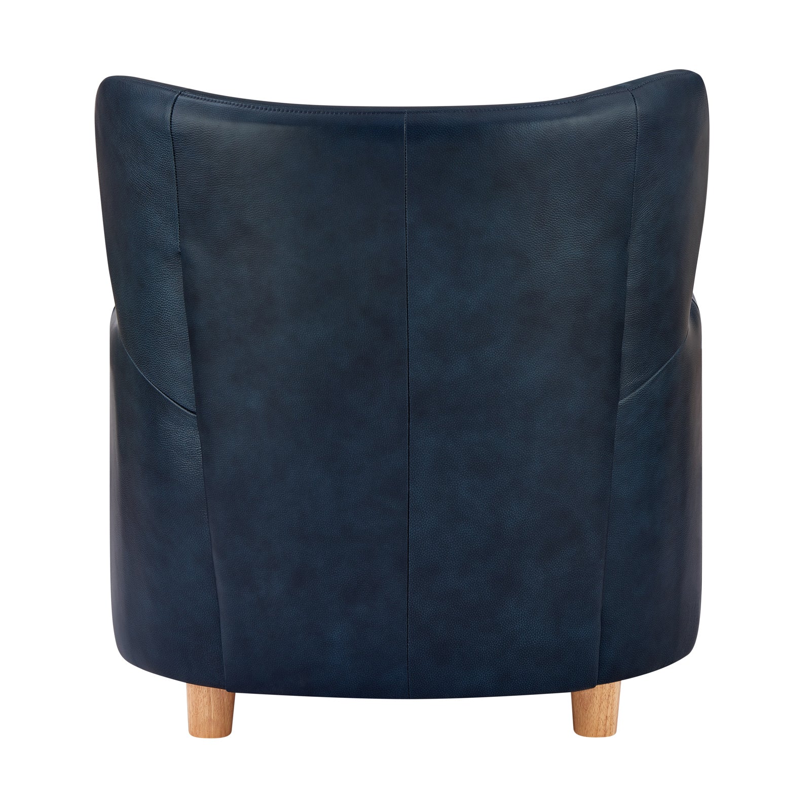 - Get a refreshed vibe by adding this cozy accent chair. Favorite highlights are the soft, curved silhouettes, low-slung seat in top grain leather and whimsy solid wood legs. High-density foam cushion offers comfy seating for lounging around. Plastic glides are included for safety and stability.