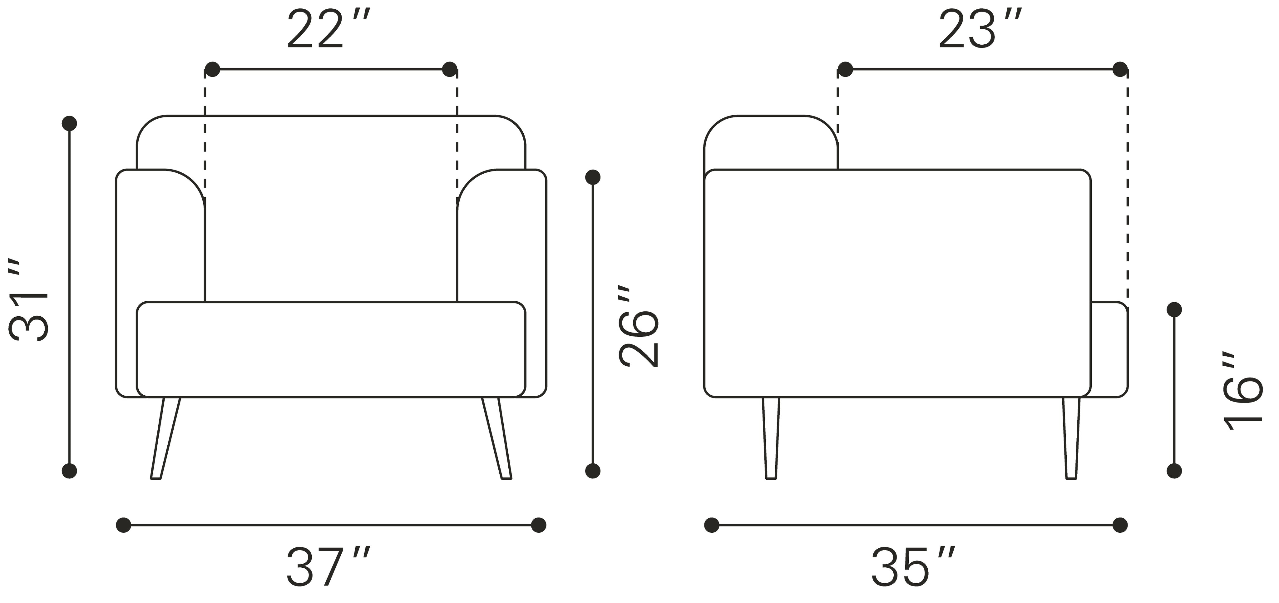 Seat Dimensions: 22" SW x 23" SD x 16" SH
