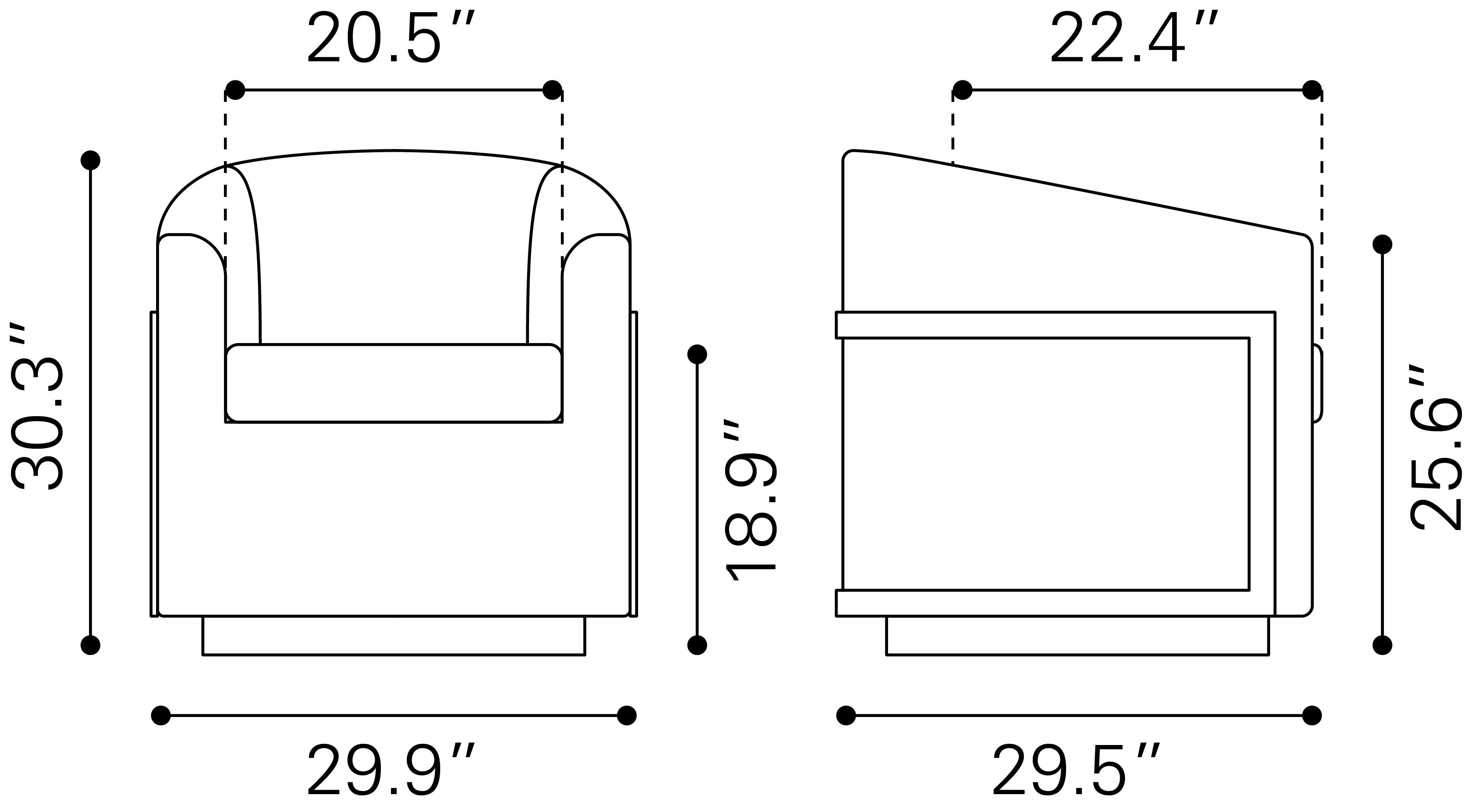 - 20.5" SW x 22.4" SD x 18.9" SH, 25.6" AH