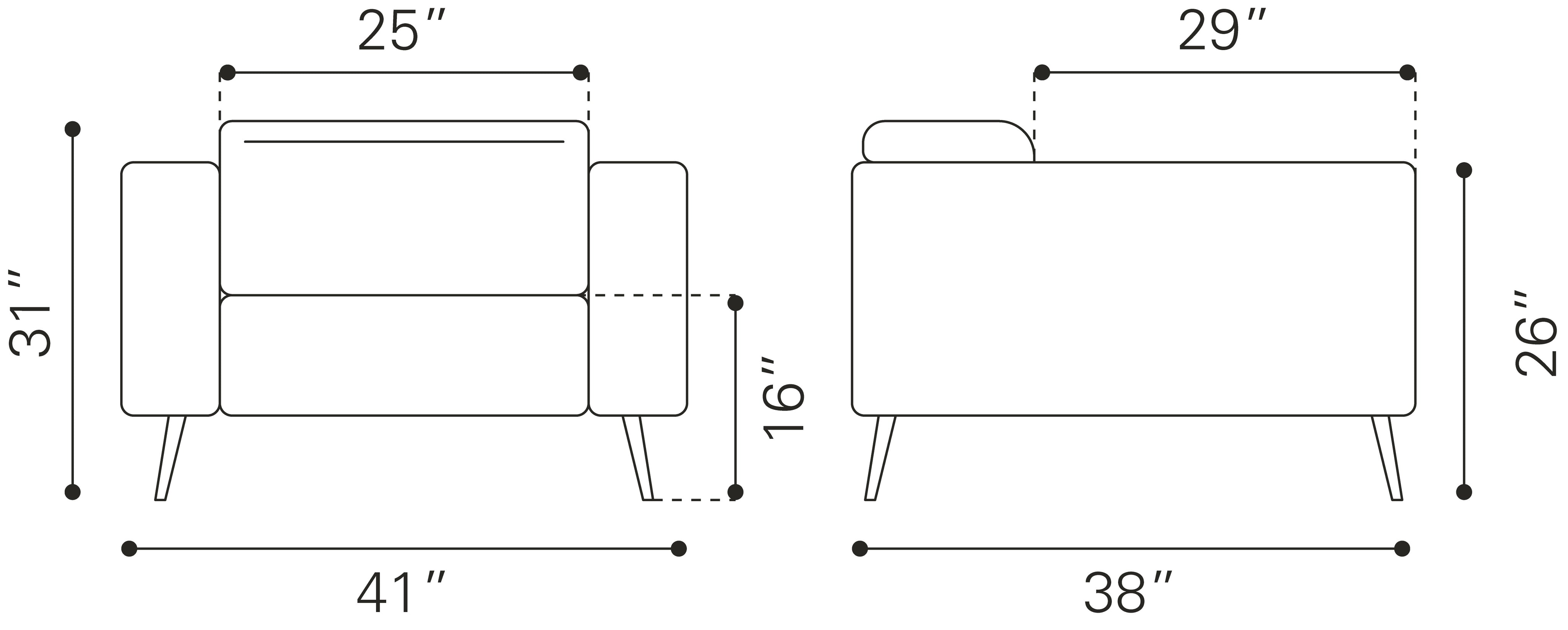 Seat Dimensions: 25" SW x 24" SD x 16" SH