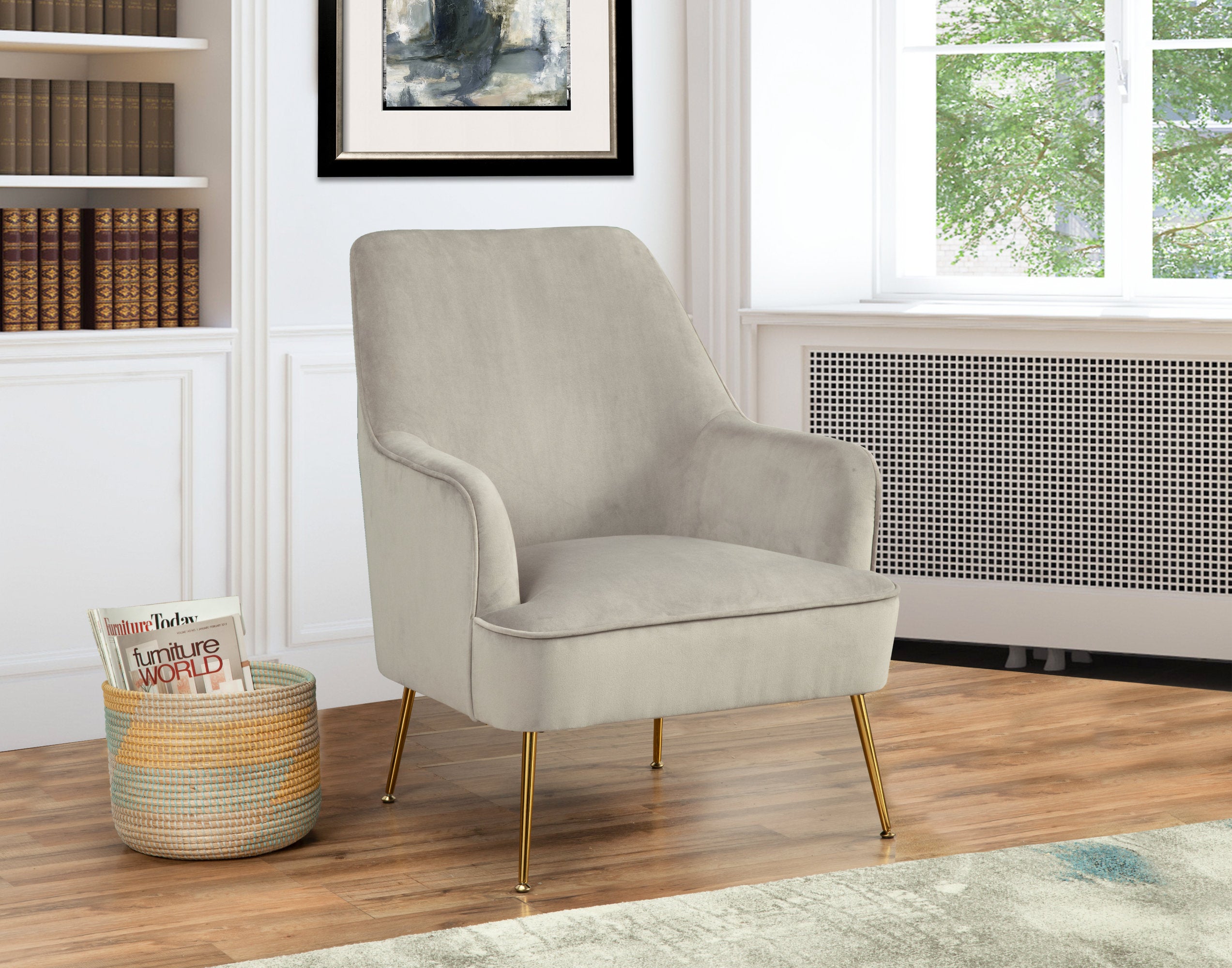 - Feature 2: Gold Metal Accent Legs