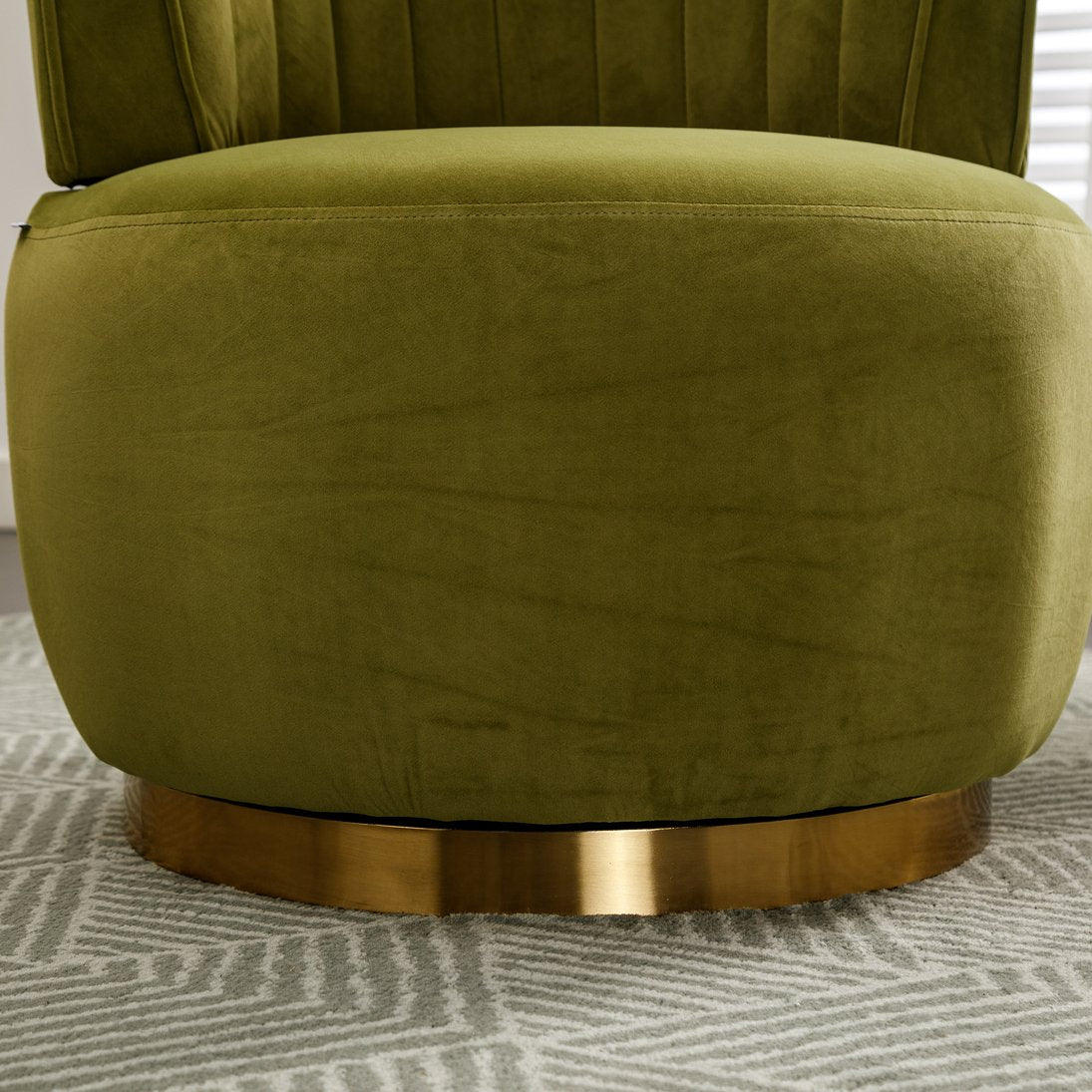 Sink into plush comfort with this elegant swivel cuddle barrel chair — a stylish accent that blends luxury velvet upholstery with supportive high-density foam and a smooth 360° swivel base. Its rounded, enveloping design makes it a cozy focal point for living rooms, bedrooms, nurseries, offices, or waiting areas, while the sturdy hardwood frame and durable metal base provide reliable support for everyday use.