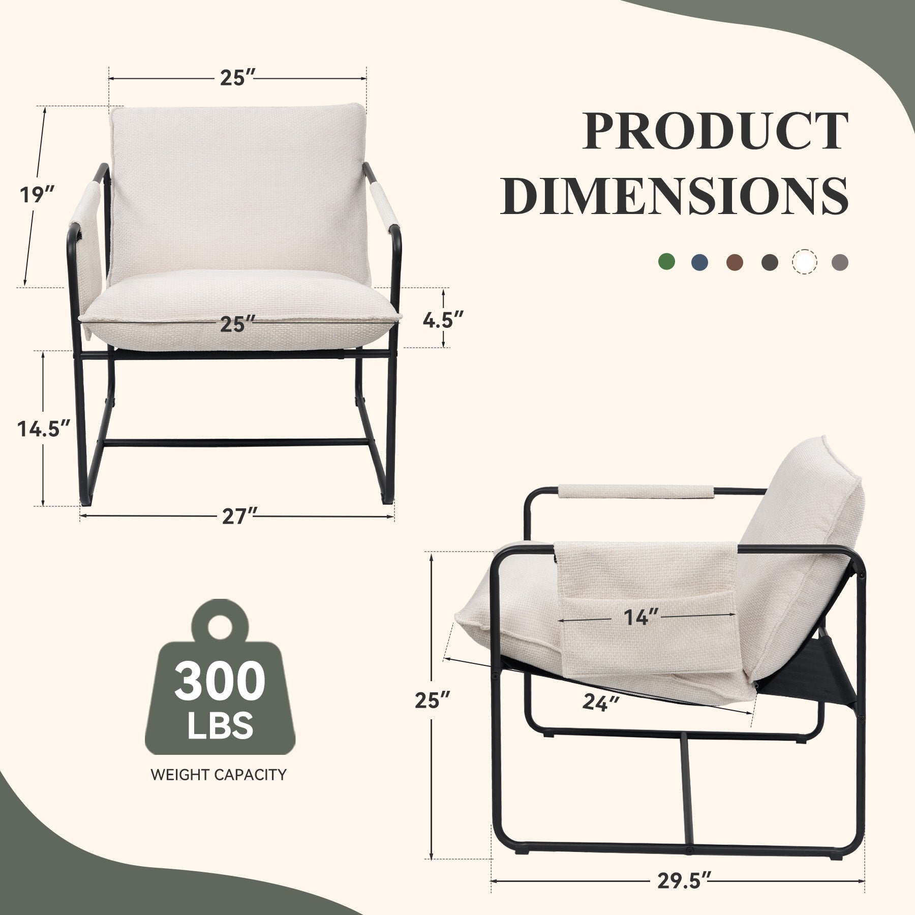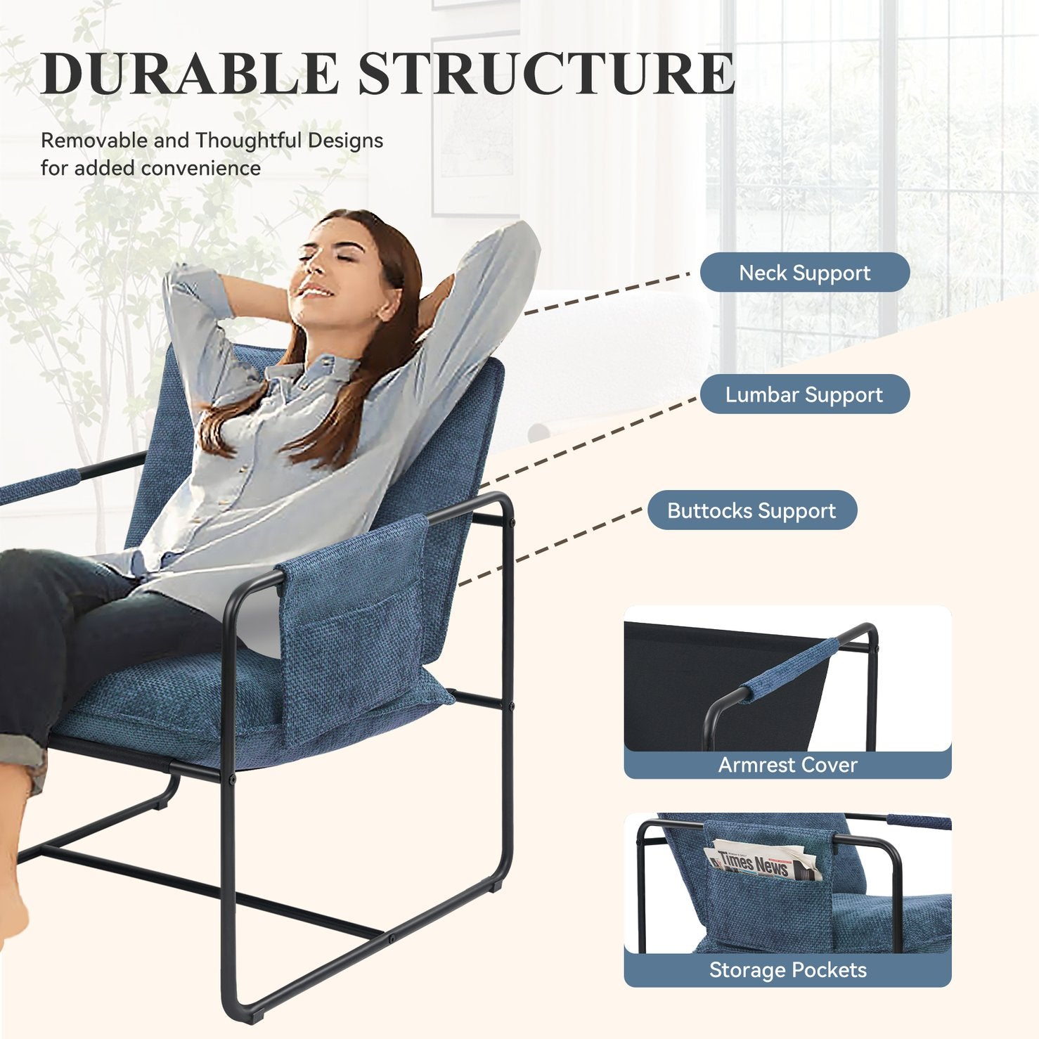 - 【Premium Material】:The seat and back cushions of bedroom accent chair are made from high resilient sponge, covered with high permeability soft fabric. It produces a softer more contouring feel without losing any support.
