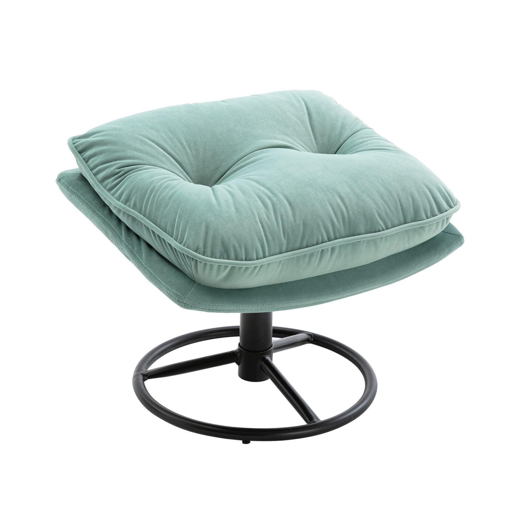 Elevate your living space with this stylish teal accent chair and matching ottoman — a perfect blend of modern design and everyday comfort. Upholstered in plush velvet with a sturdy metal frame and swivel base, this set offers inviting seating for relaxing, watching TV, or entertaining guests. Its compact footprint and bold color make it ideal for apartments, reading nooks, or as a statement piece in your living room.