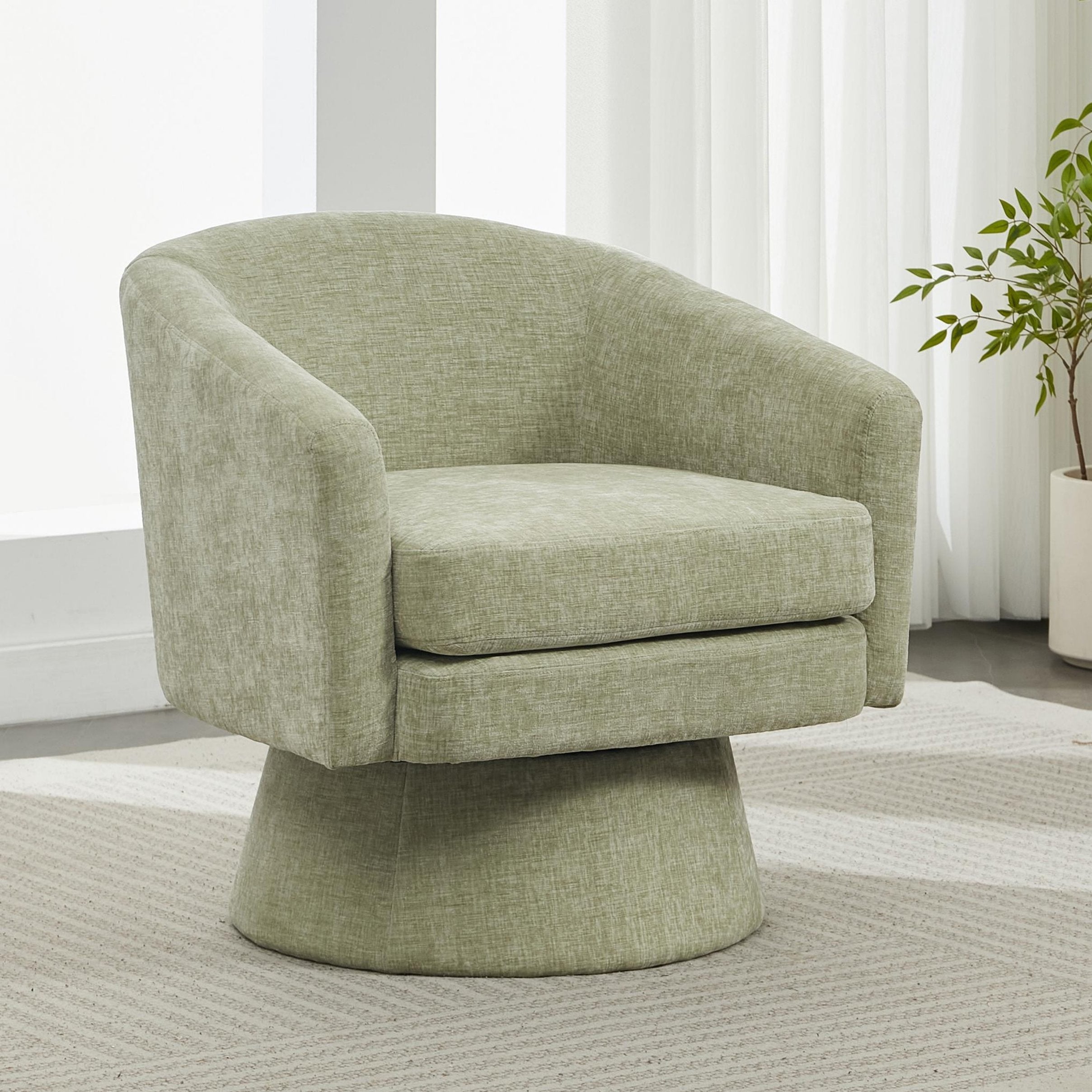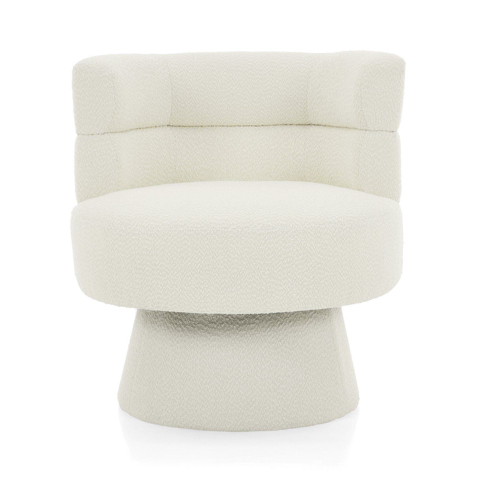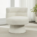 Add a touch of modern luxury to any room with this contemporary 360° swivel accent chair. Upholstered in soft cream-white boucle, its barrel silhouette and low-profile design provide cozy, supportive seating while the full swivel base adds versatile functionality for living rooms, bedrooms, or home offices. Built with a sturdy plywood frame and rated for everyday use, the chair balances comfort, style, and durability.