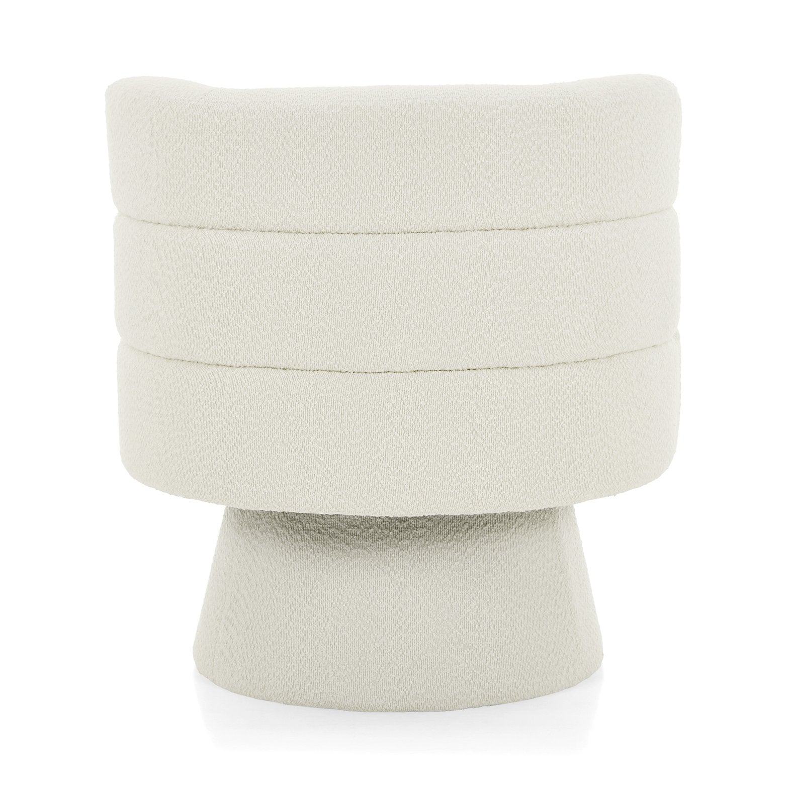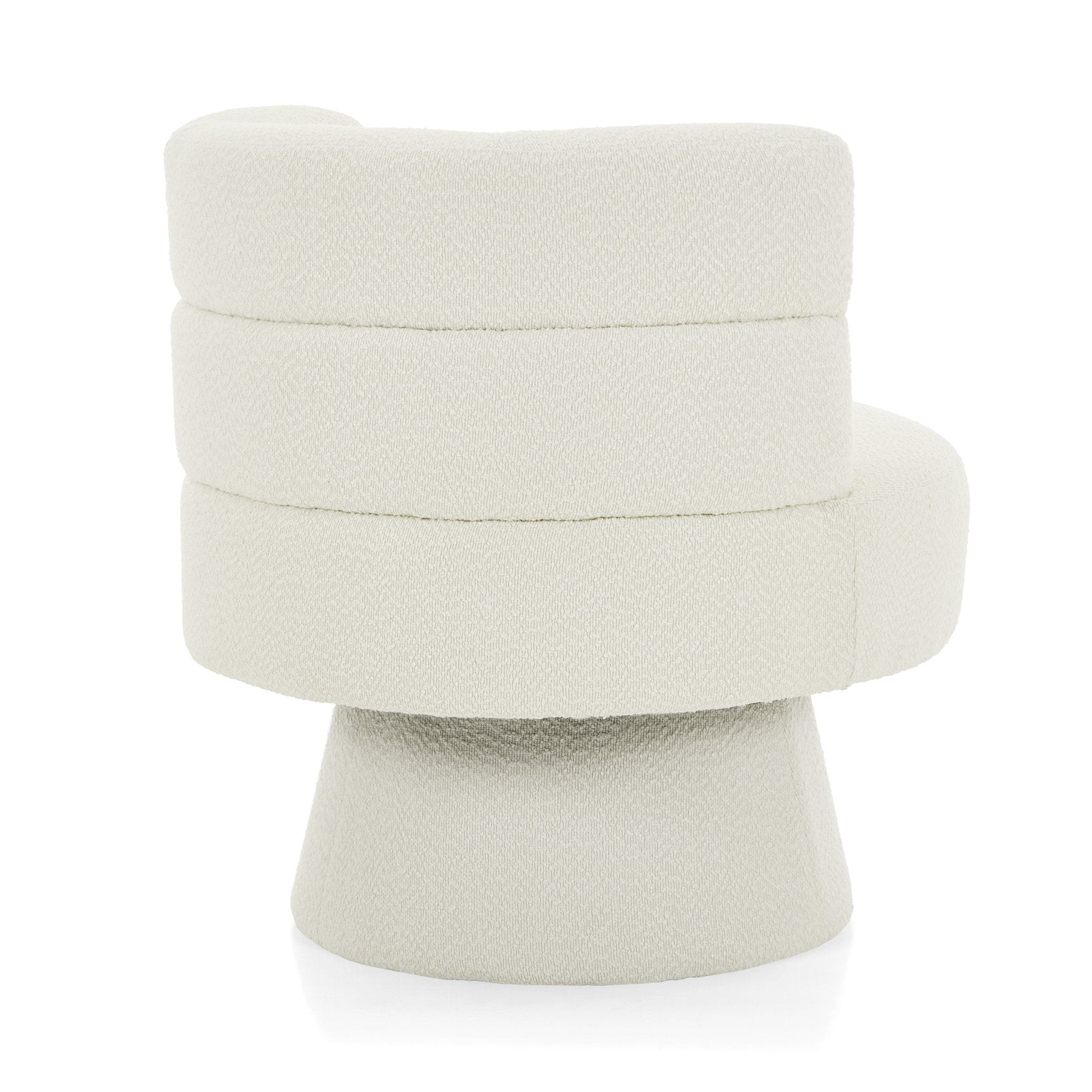- Versatile Decor Compatibility: With its neutral and elegant cream-white color, this boucle swivel chair seamlessly integrates with a wide range of interior styles, from modern minimalist to classic and eclectic. It can serve as a statement piece in the living room, a cozy addition to the bedroom, or a stylish seating option in the home office, instantly elevating the space's aesthetic.