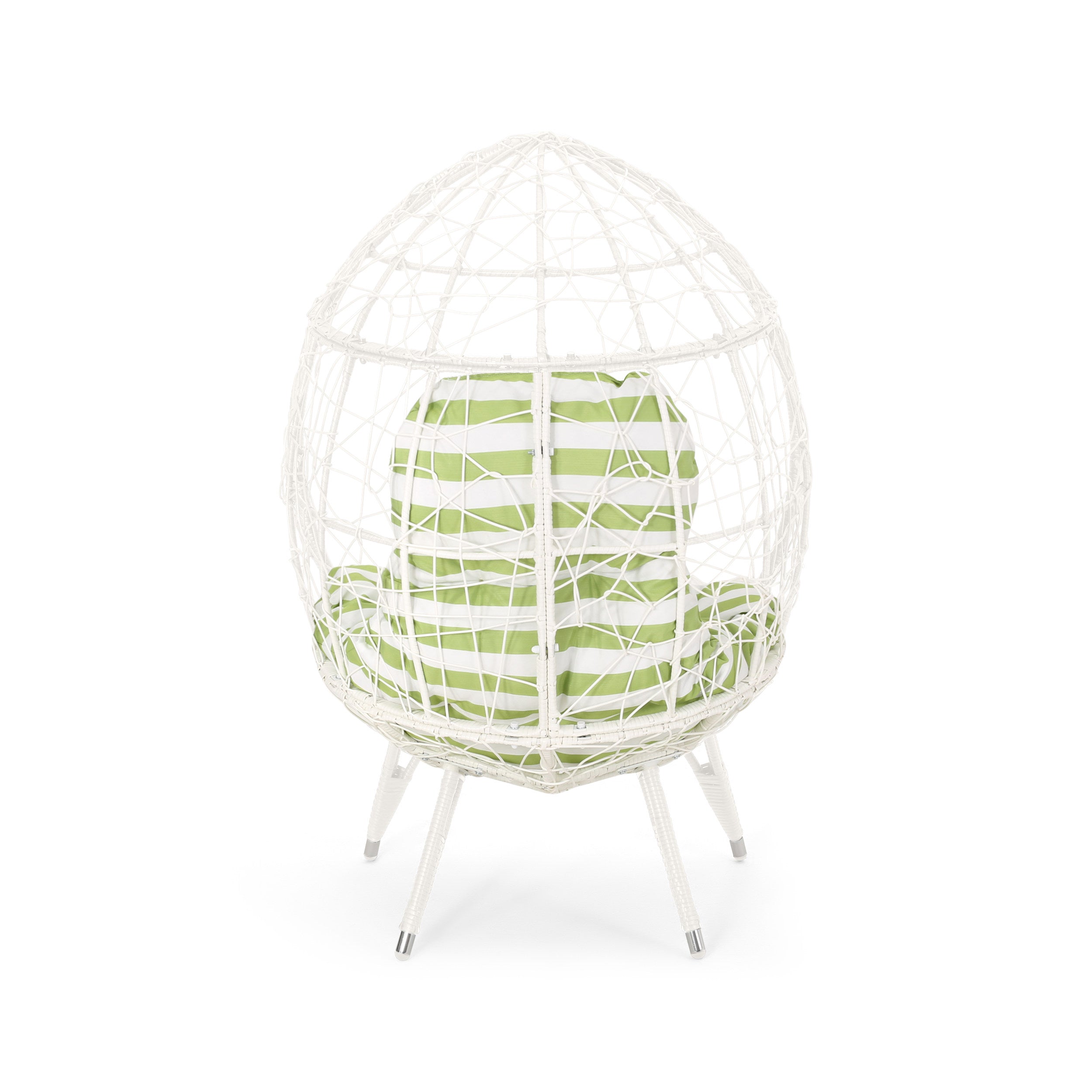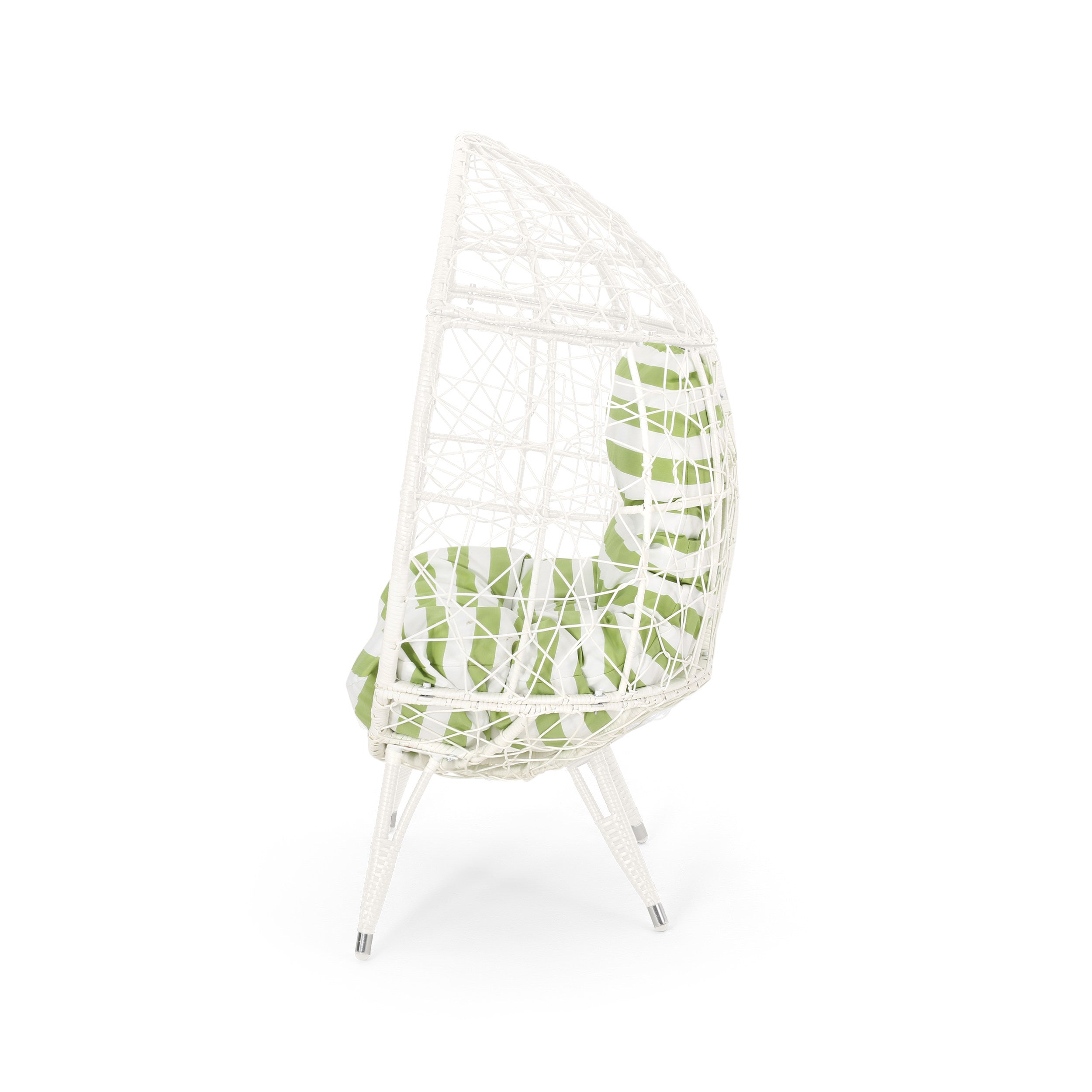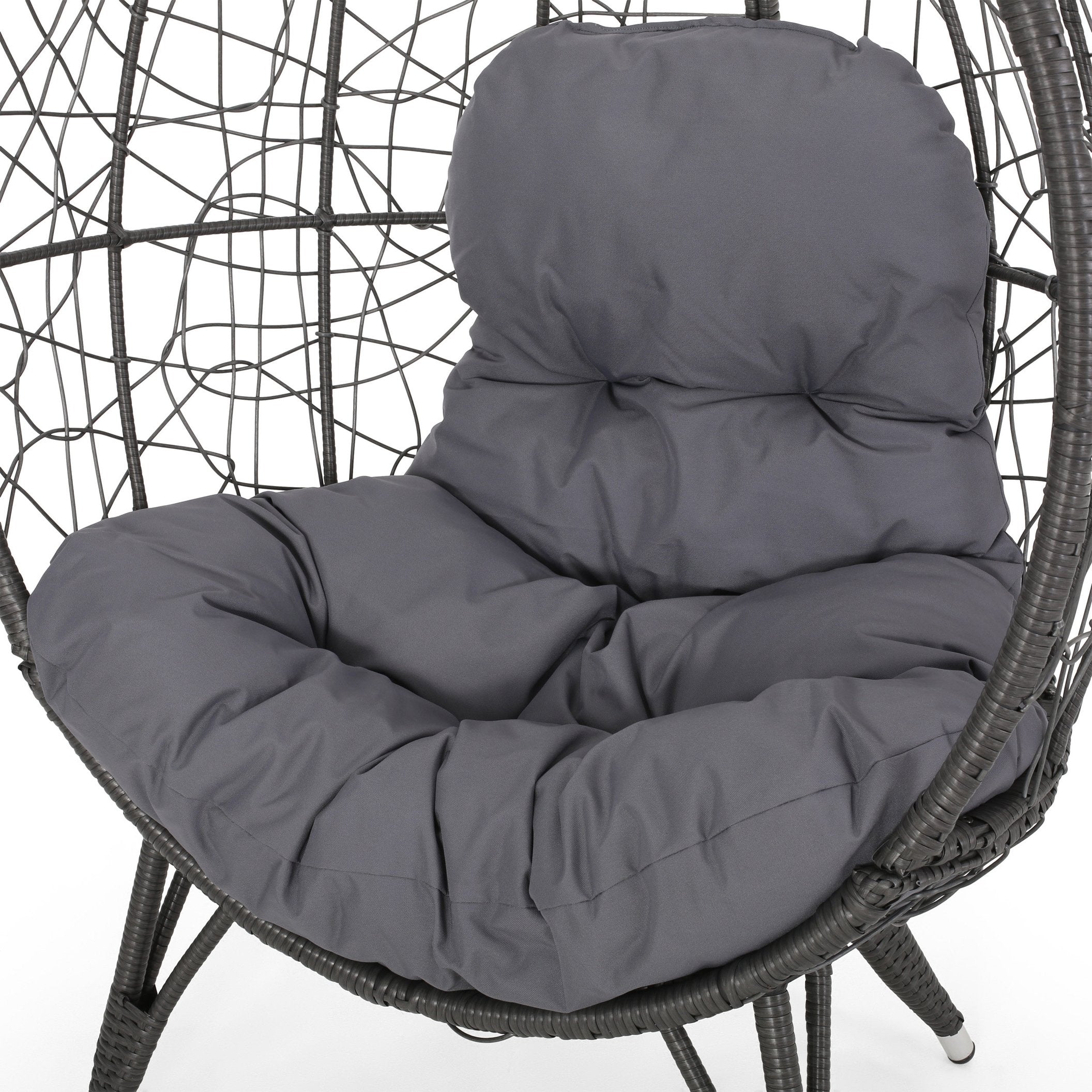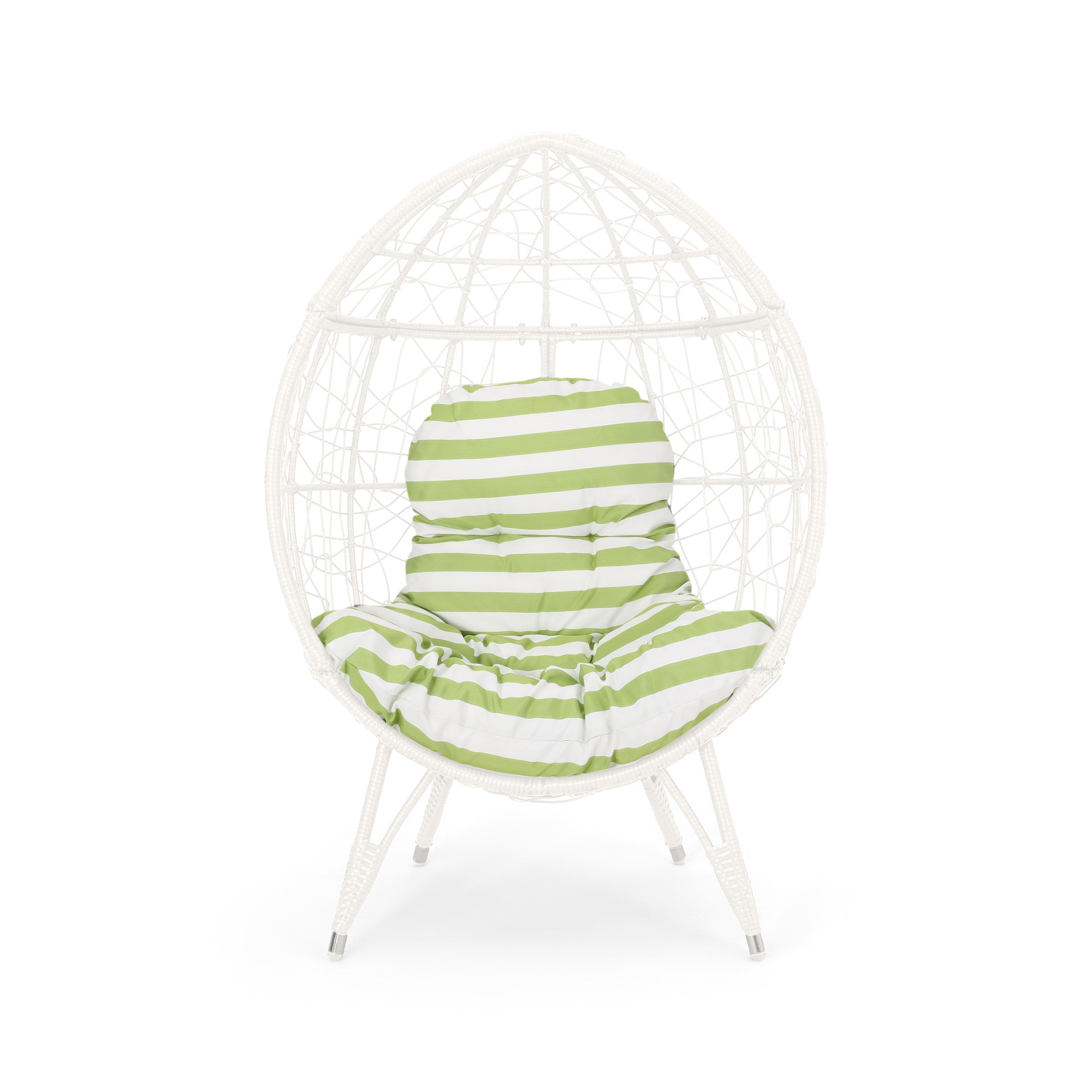 Relax in sculptural style with the Gianni Teardrop Chair — a striking, contemporary accent for patios, sunrooms, or garden nooks. Handwoven faux rattan over a sturdy iron frame creates an open, teardrop silhouette that’s both airy and supportive. Plush, water-resistant cushions provide comfortable seating while the durable finish stands up to outdoor use. Available color options let you coordinate the chair with your existing decor for a polished, inviting look.