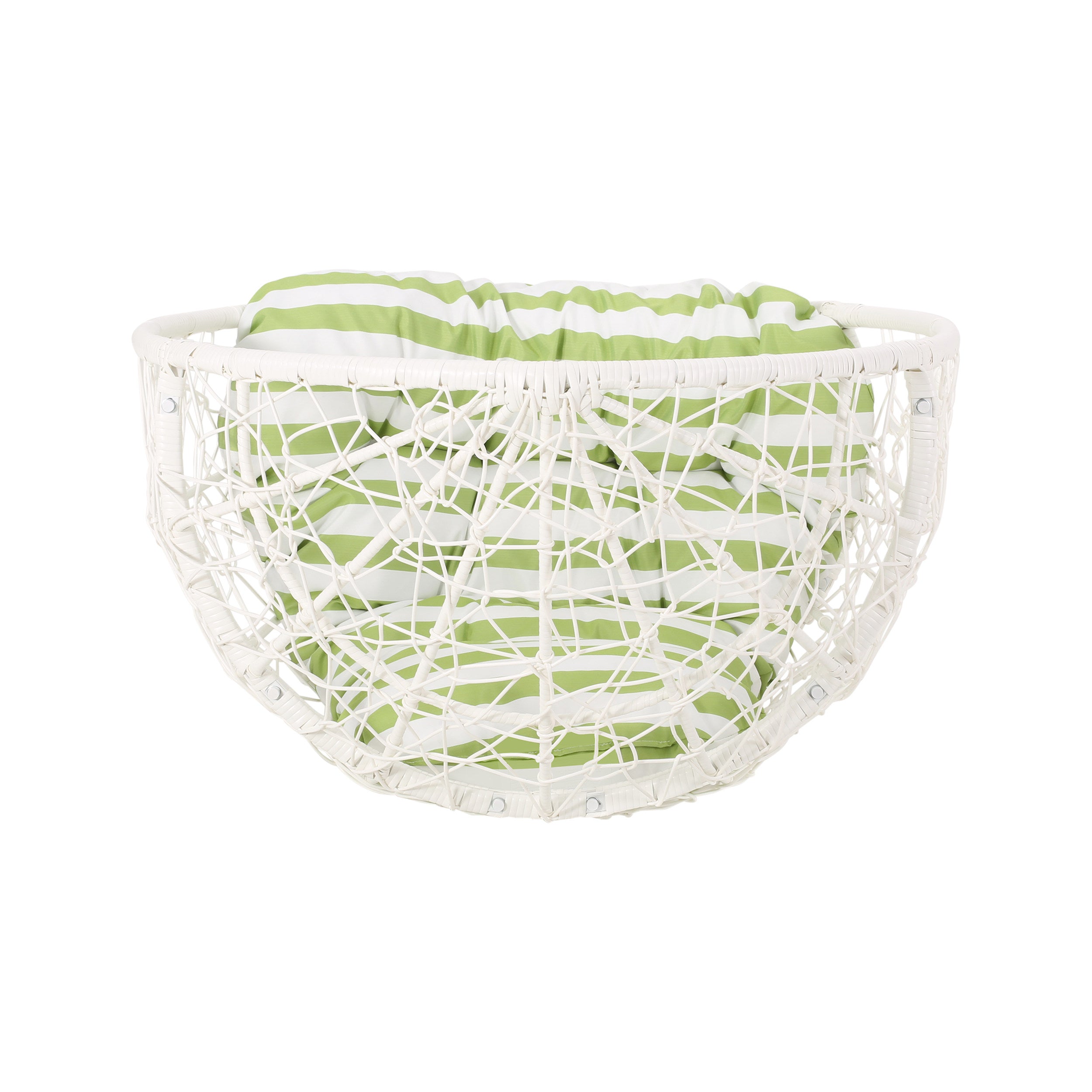 - Available colorways: grey frame with grey cushion, or white frame with green cushion