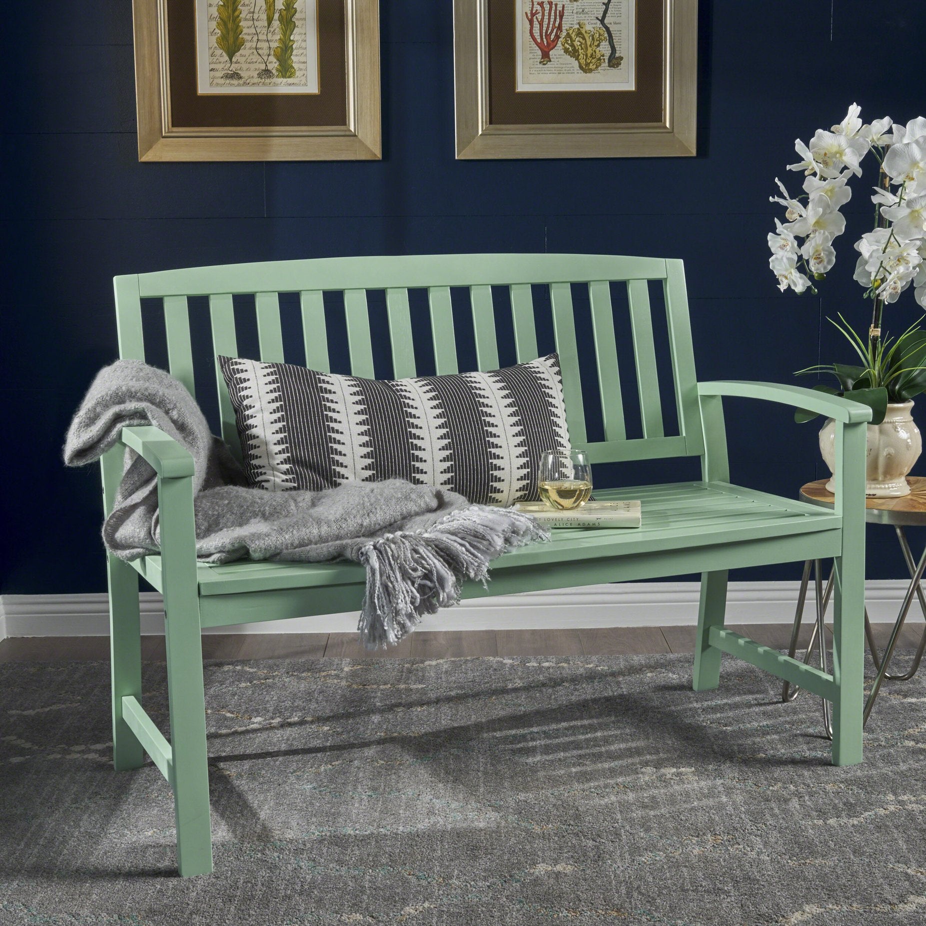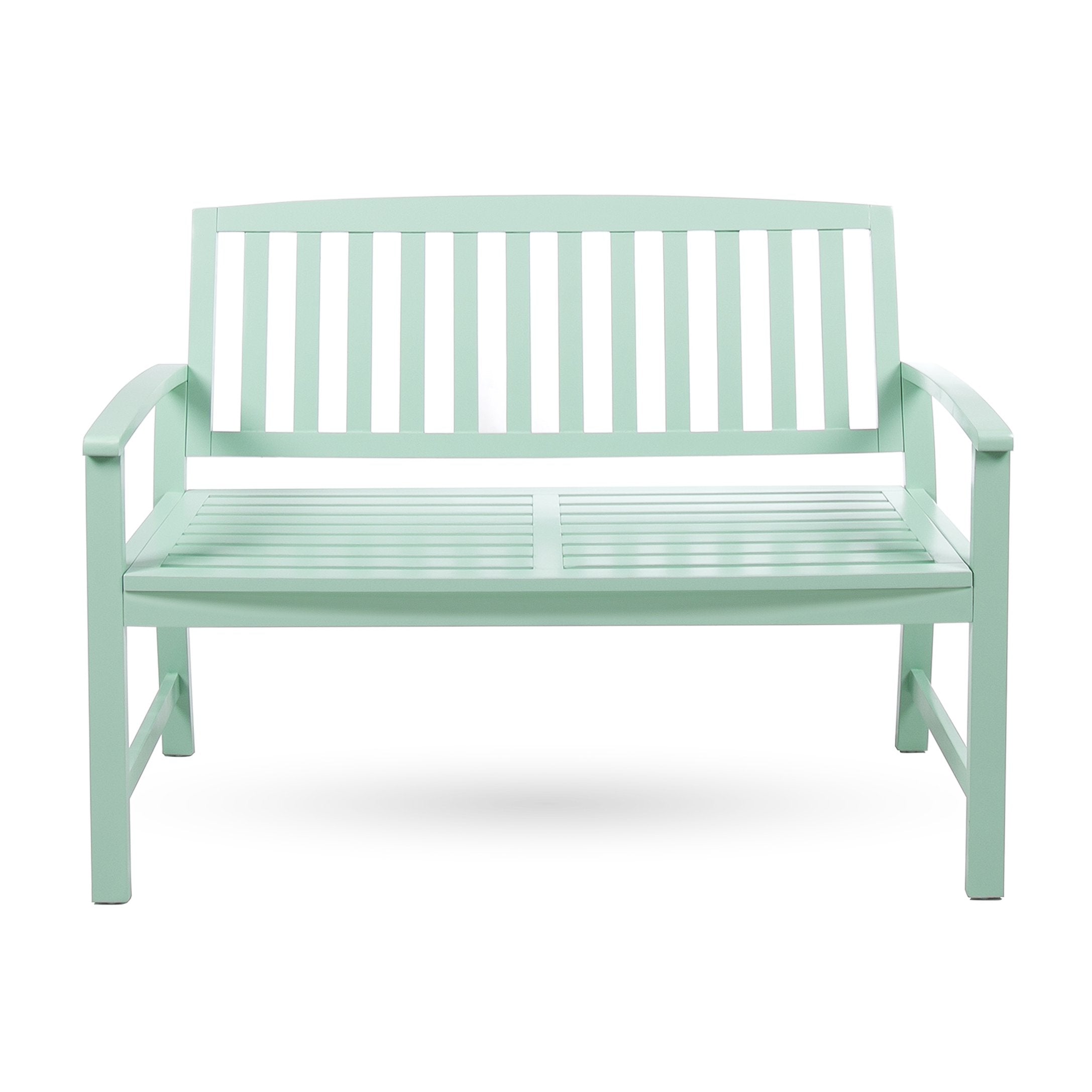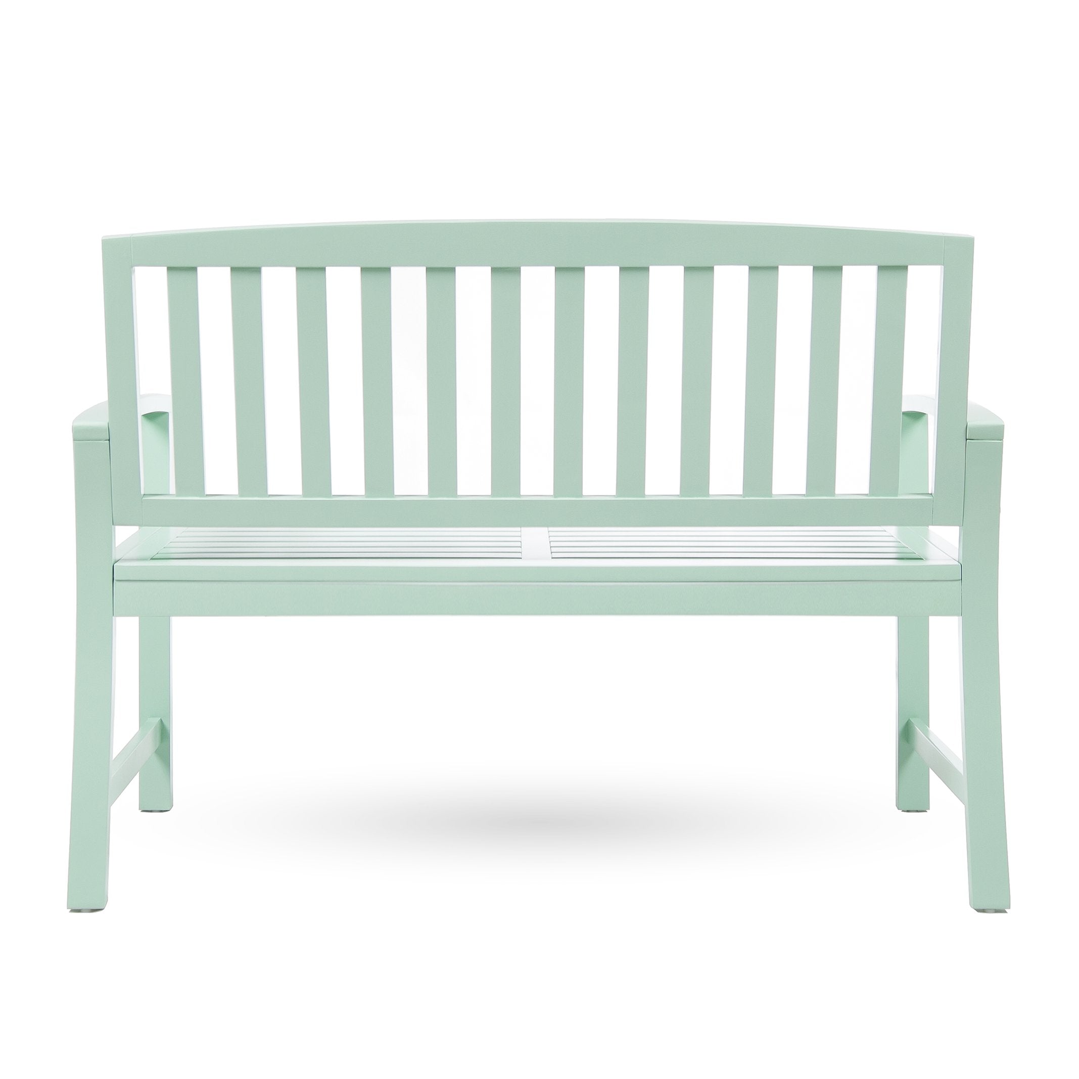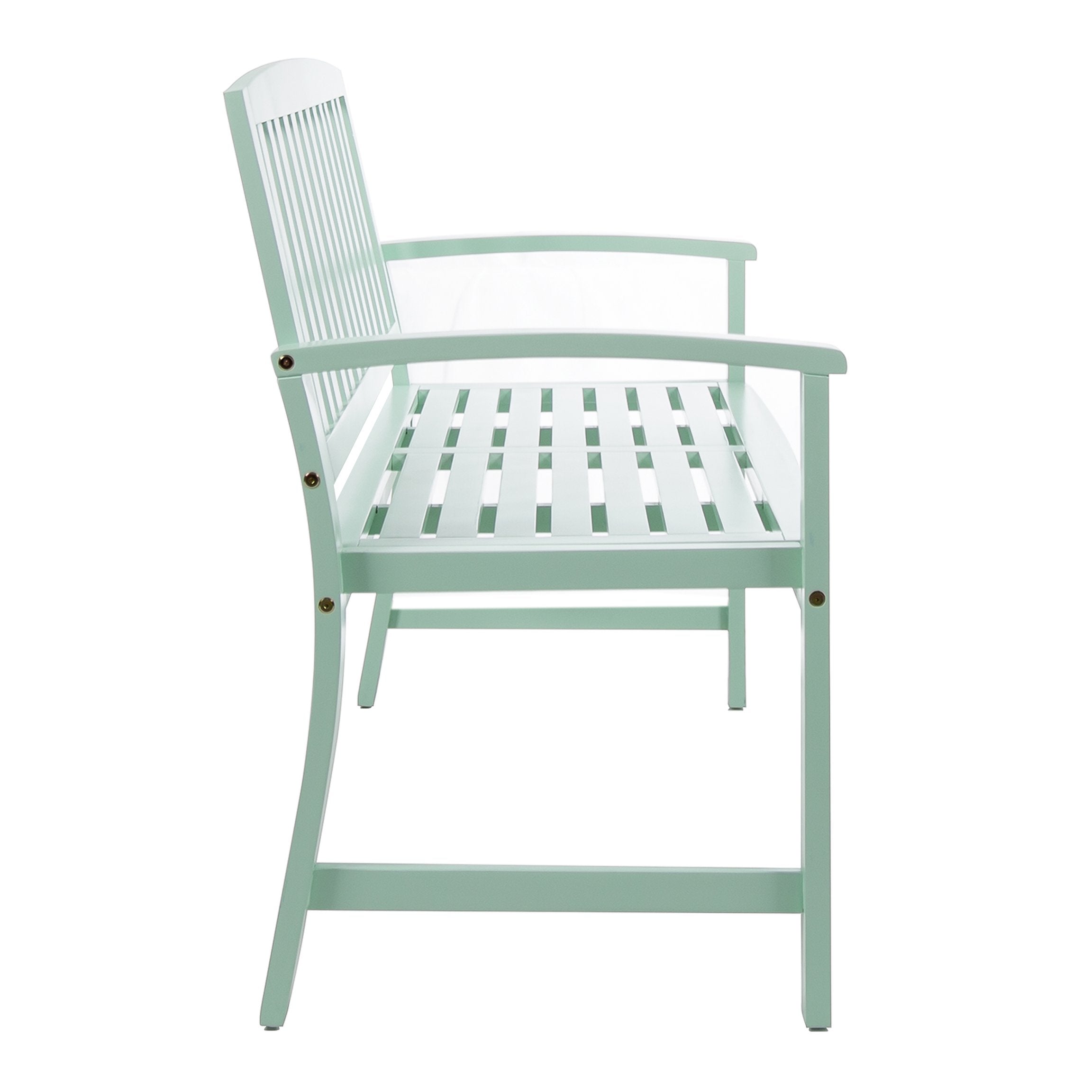 Bring relaxed, durable style to your outdoor space with the Loja Bench. Crafted from solid acacia wood and finished in a fresh light mint, this thoughtfully designed bench combines weather-ready performance with ergonomic comfort and a clean, contemporary look—ideal for patios, porches, gardens, or entryways.