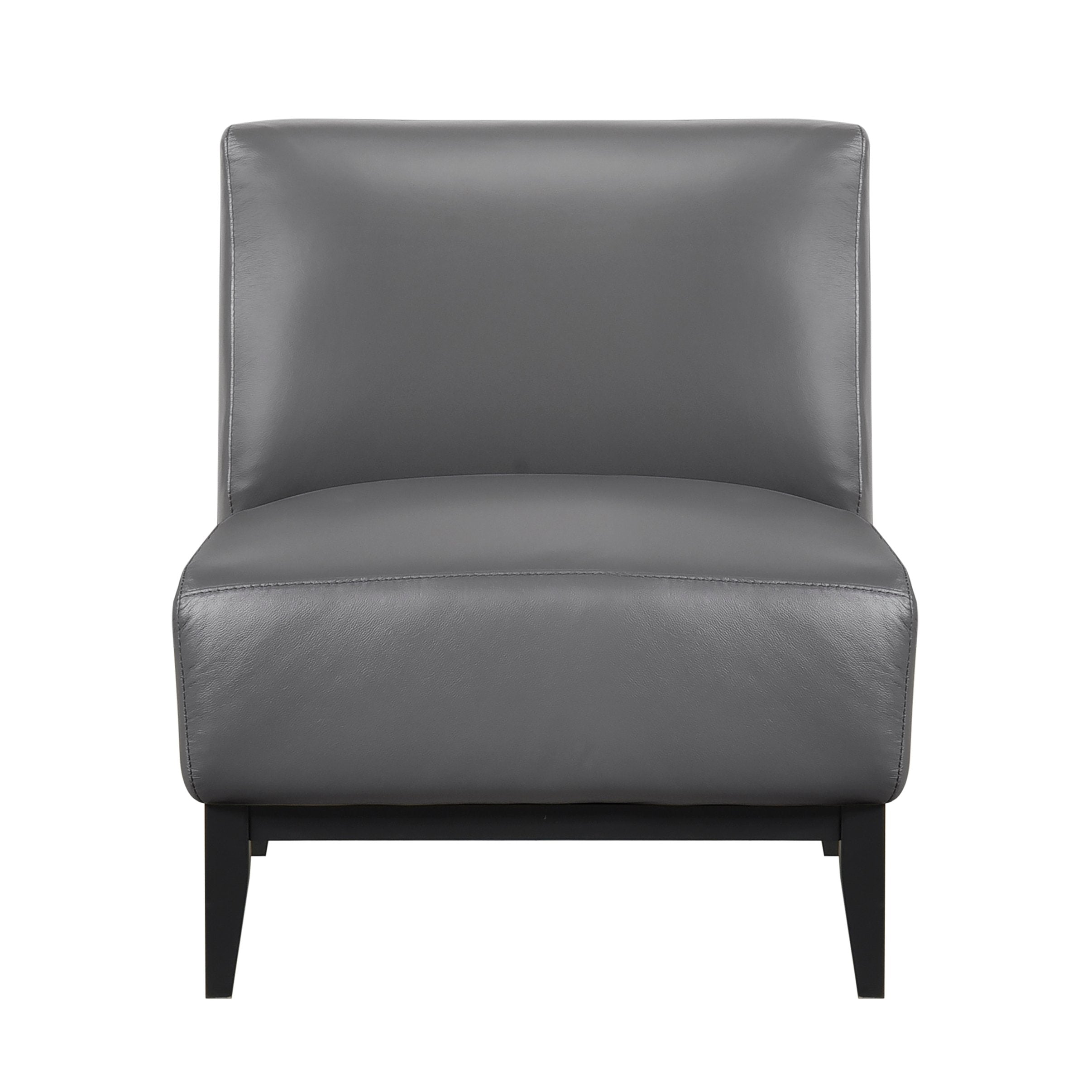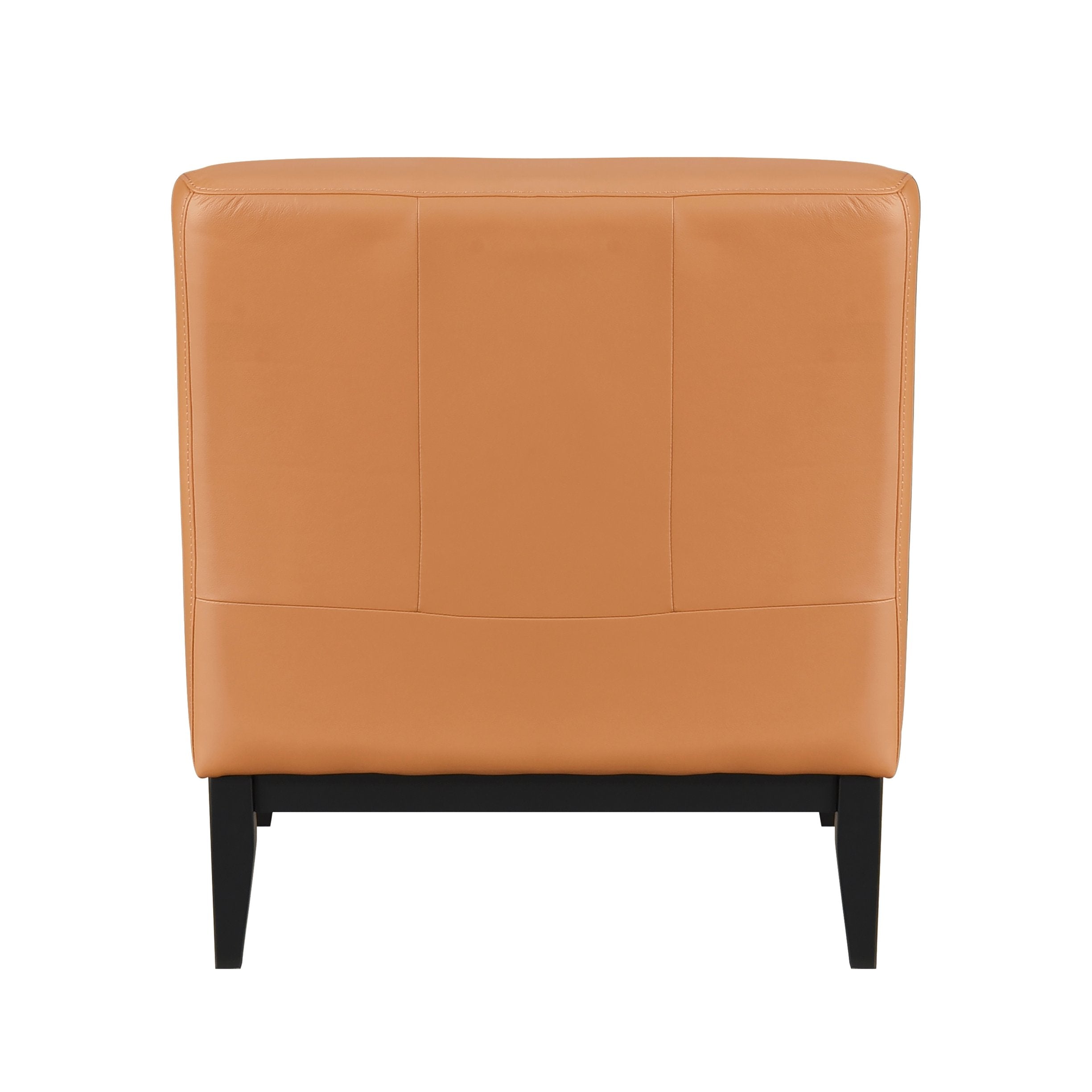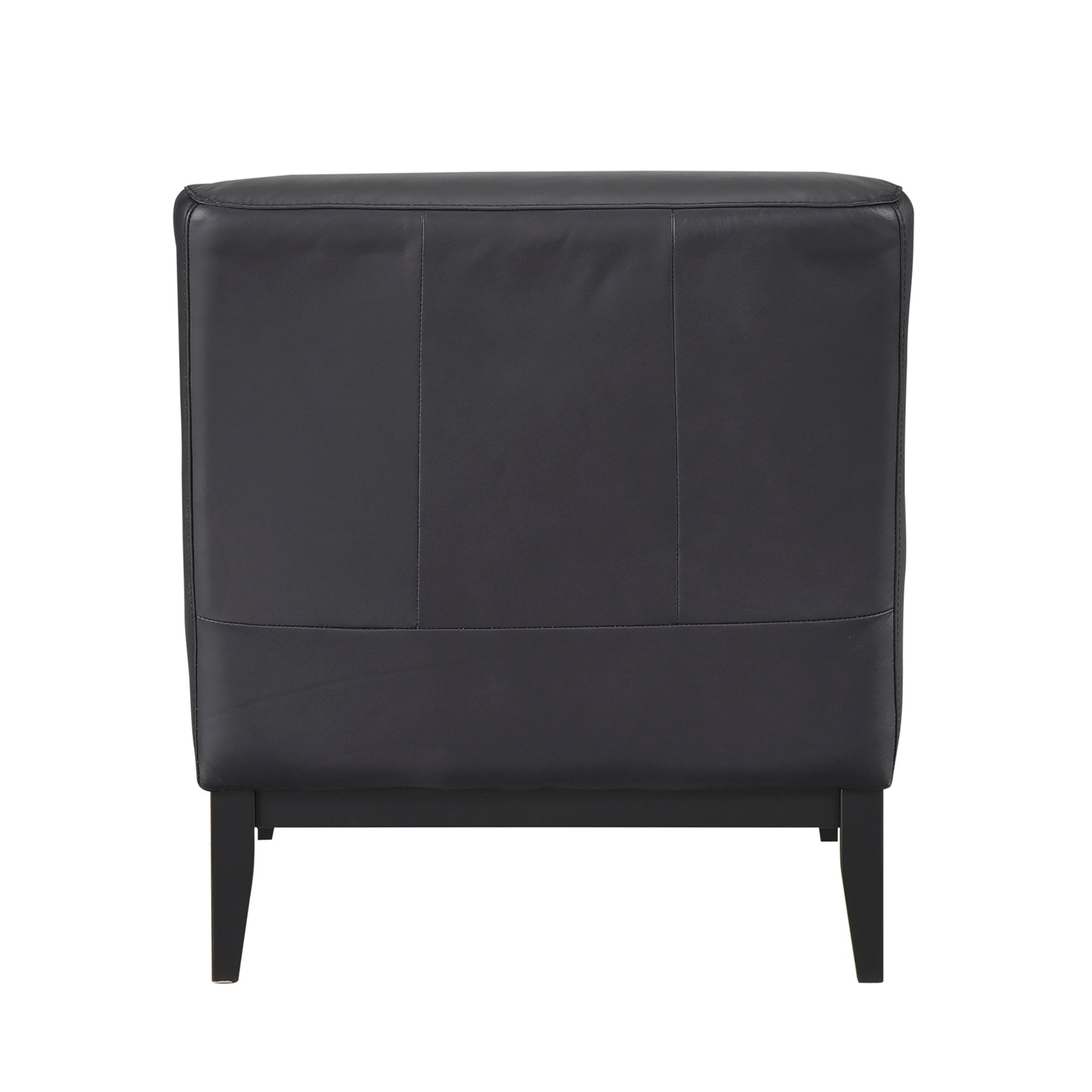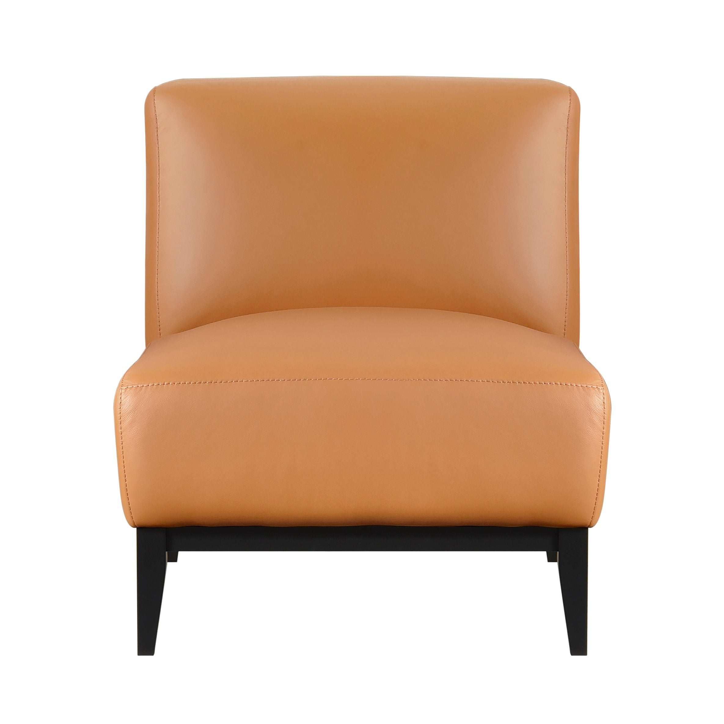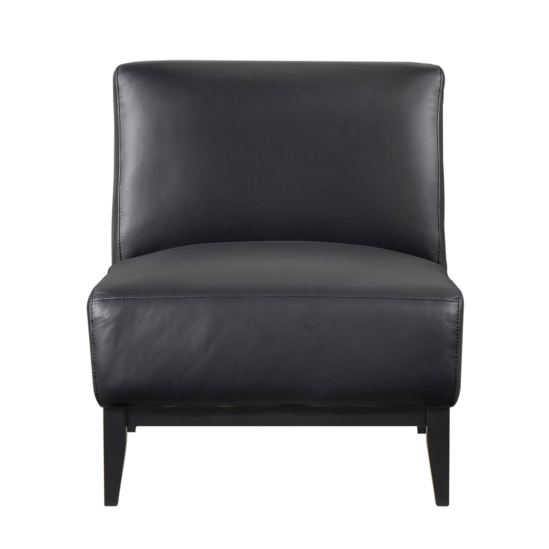 Elevate your room with a refined leather slipper chair that blends classic craftsmanship with contemporary comfort. Wrapped in 100% top-grain leather and supported by a solid wood and plywood frame, this chair delivers lasting durability and a luxurious feel—perfect for living rooms, bedrooms, or office lounges. Its attached high-density foam cushions keep a clean silhouette while providing plush support, and the black-finished solid wood legs add a modern accent. Designed to support up to 300 lbs, this chair balances form and function for everyday use.
