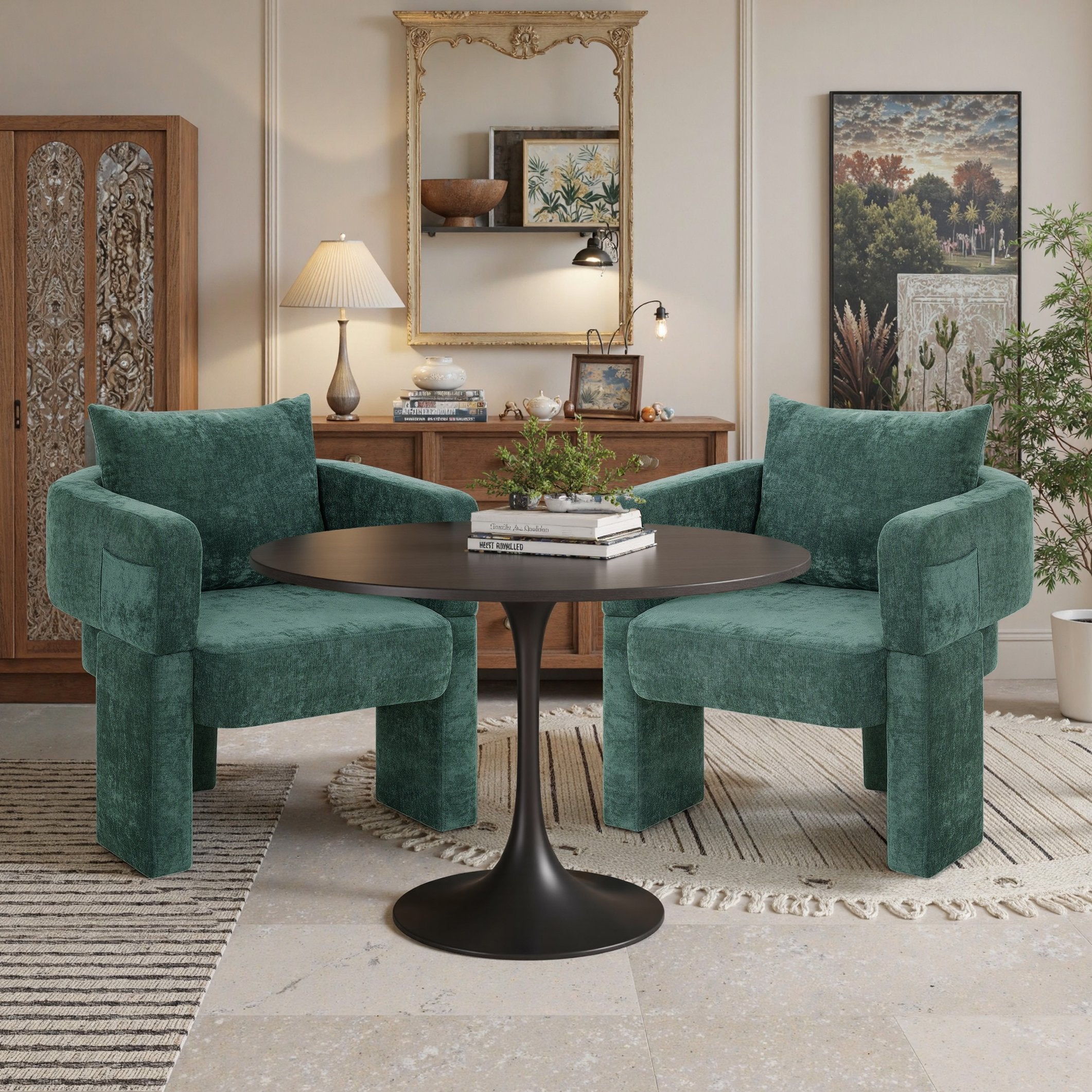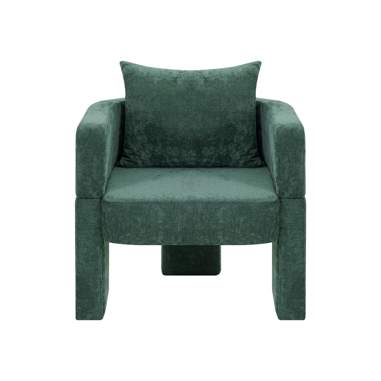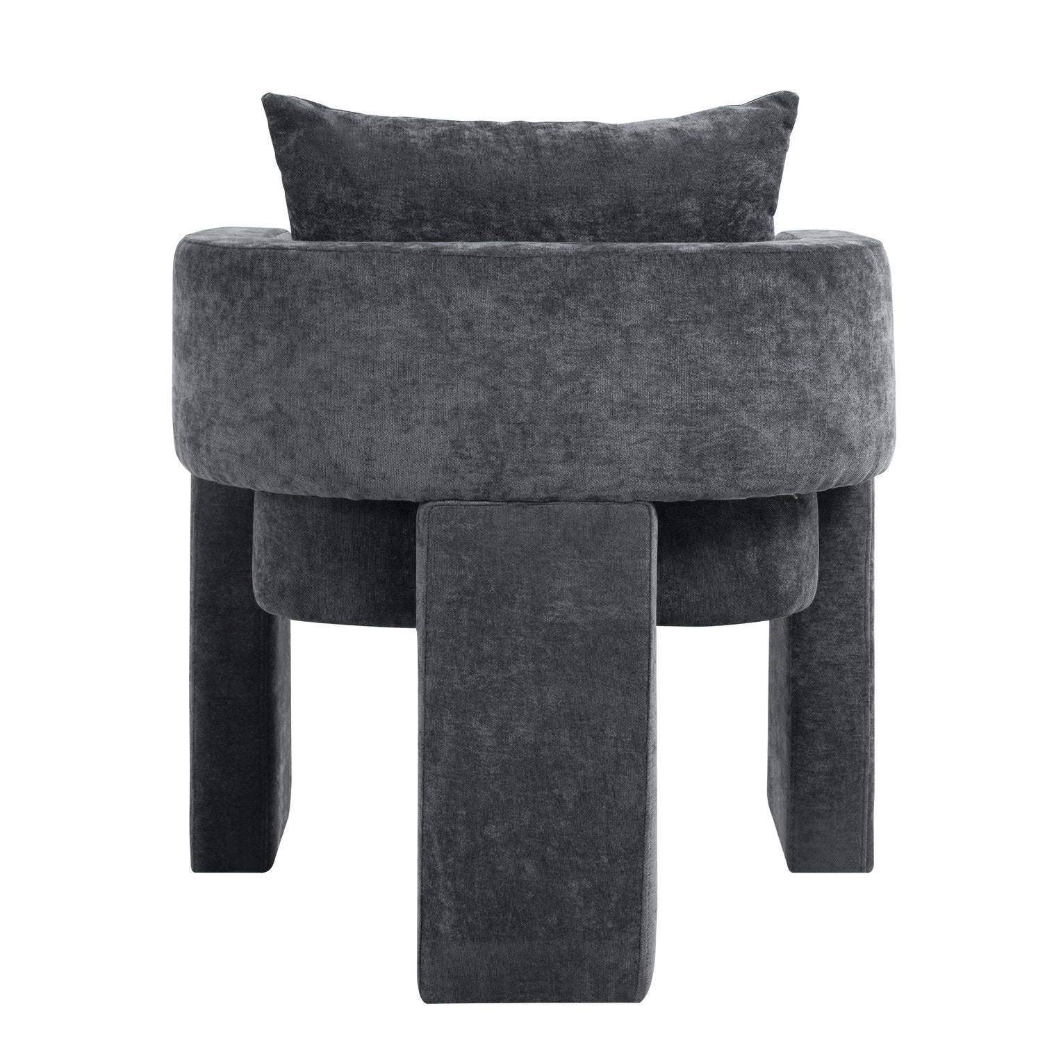 A stylish, compact accent chair that blends mid-century modern design with everyday comfort — perfect for dining, living rooms, bedrooms, offices, or small spaces. Upholstered in soft chenille, this 3-leg armchair features ergonomic arms and a removable lumbar pillow for customizable support, while its sturdy frame and tailored silhouette add a refined touch to any room.