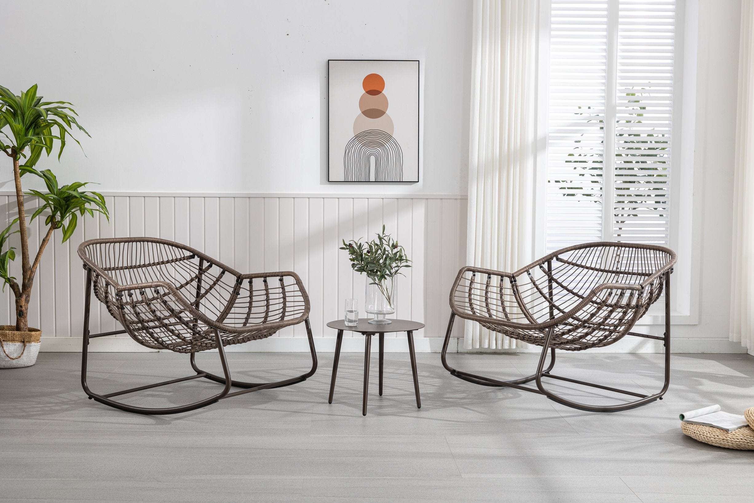 - The rattan rocking chair has a strong and durable steel frame, the main chair frames are powder-coated to combat water, UV rays, and rust. Ideal patio rocking chair for your house. It can be used for many seasons.