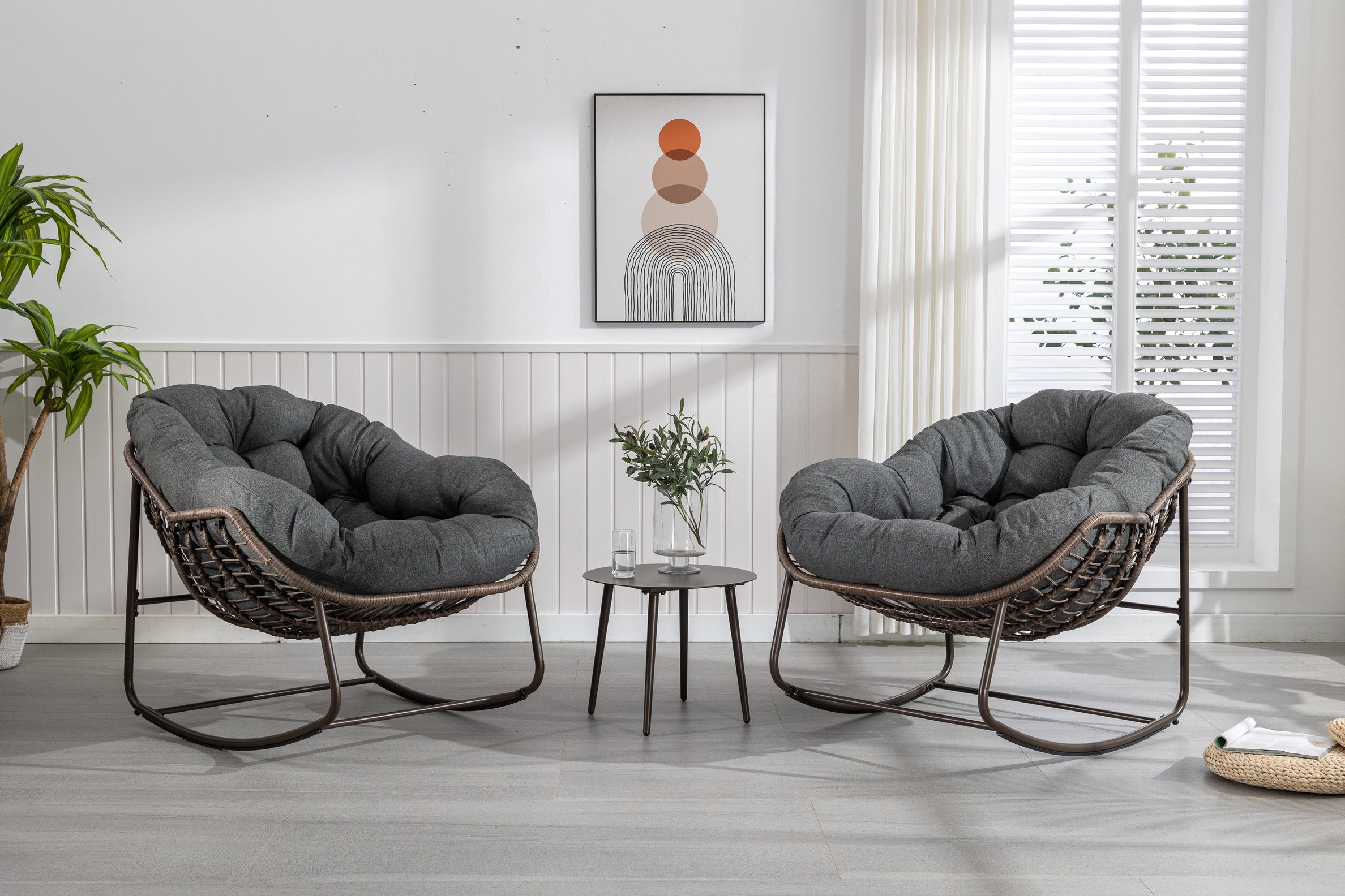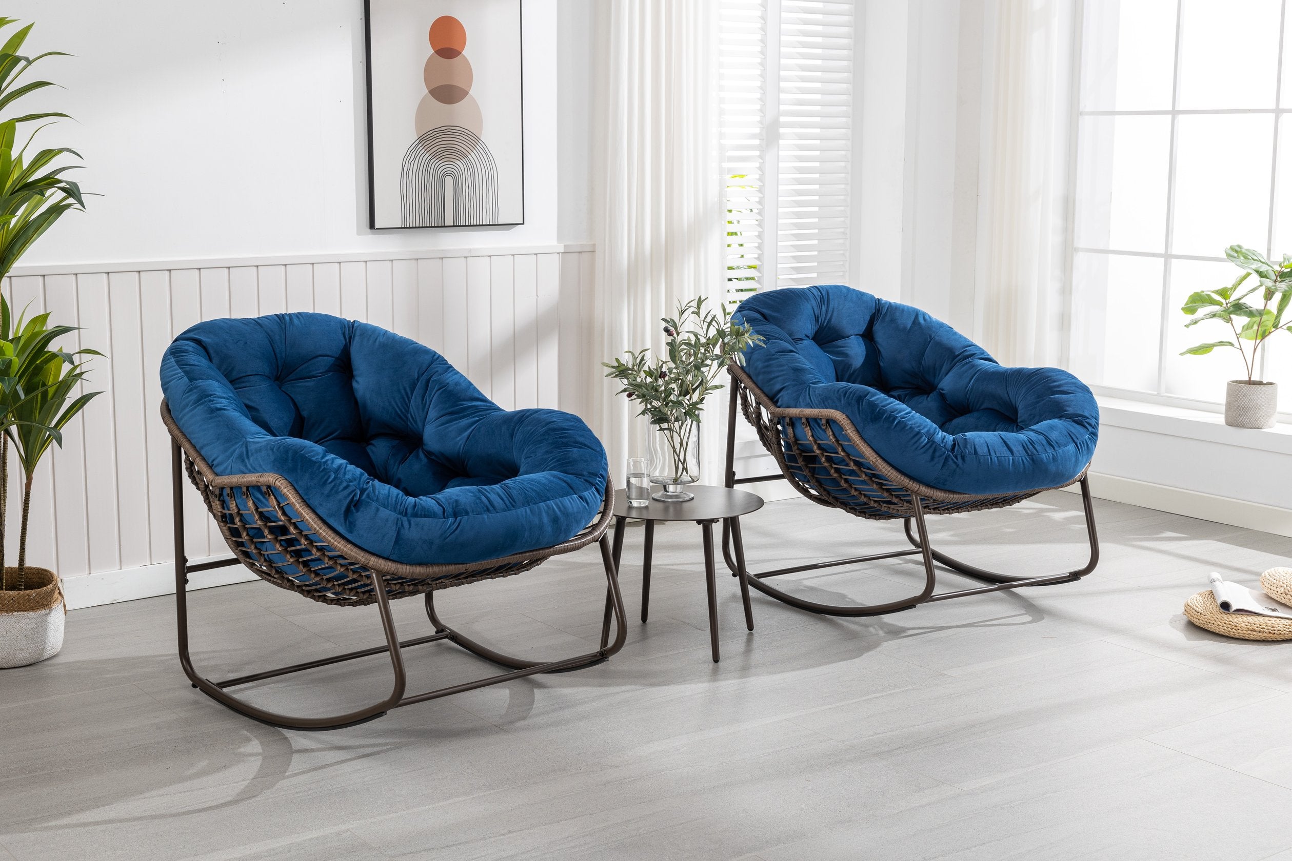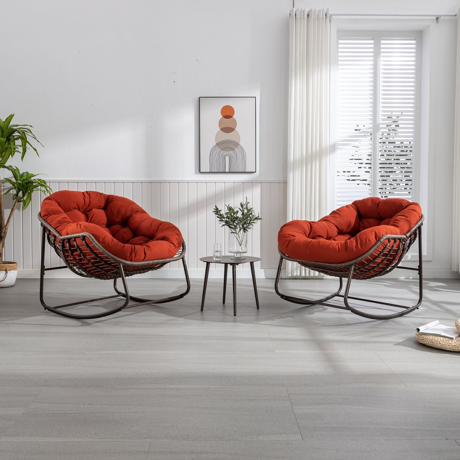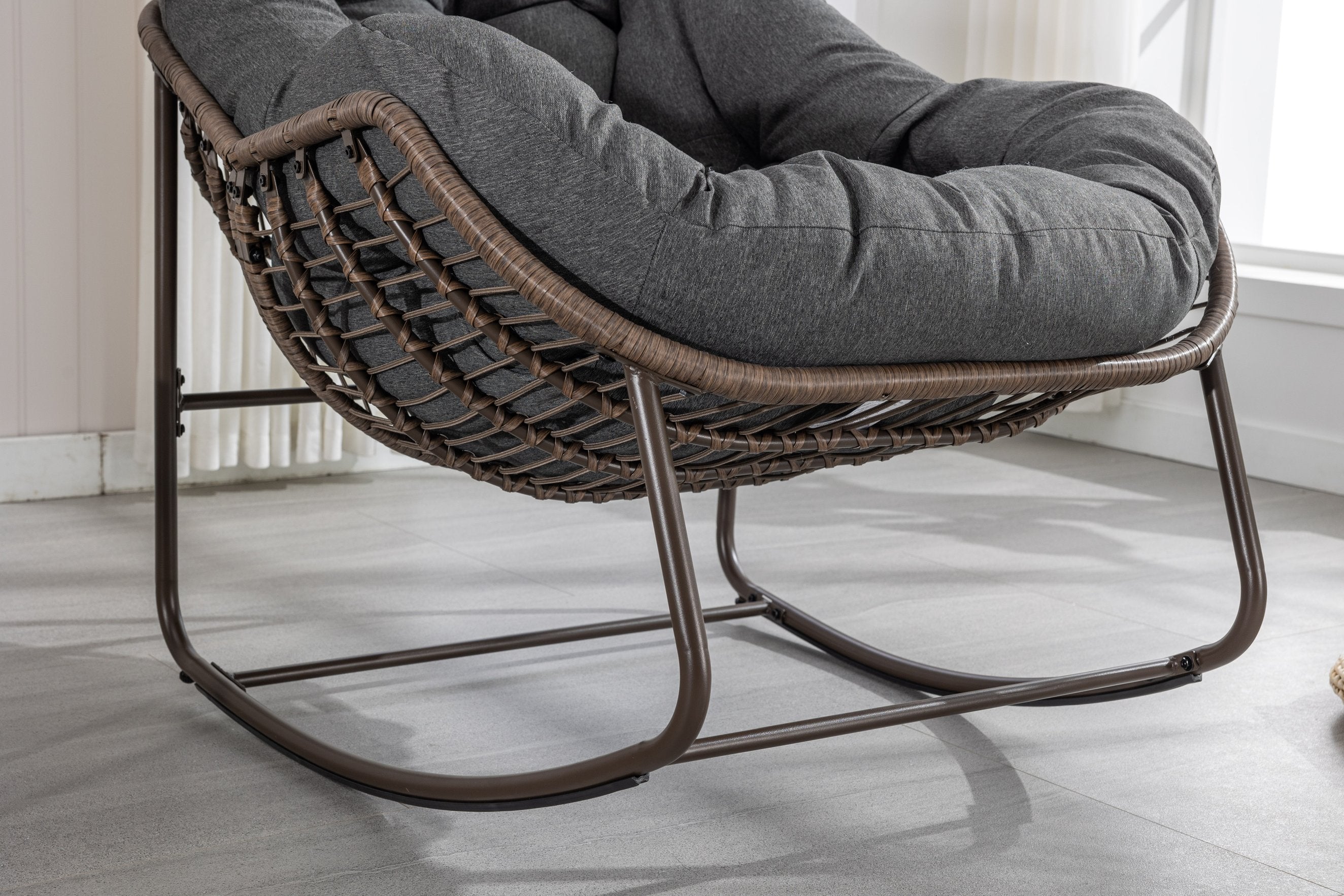 - Is larger than the general rattan chair.Maximum load 250lbs/113kg. The comfy oversized rocking chair is suitable for all kinds of people and perfect for decorating your front porch, patio, living room, etc.