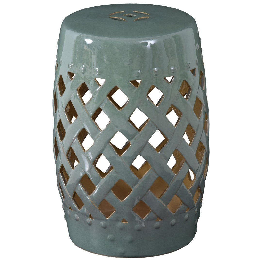 Enhance your indoor or outdoor space with this elegant glazed ceramic garden stool. Its woven lattice pattern and glossy green finish bring classic charm and versatile function—use it as a side table, extra seating, or a decorative accent on the patio, porch, or living room. Durable porcelain construction resists the elements while the compact footprint makes it easy to move and tuck into place wherever you need a stylish, functional piece.