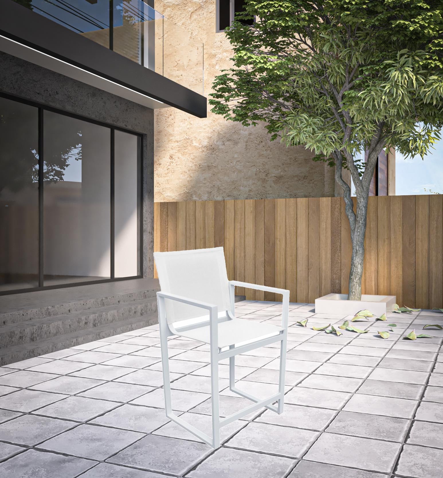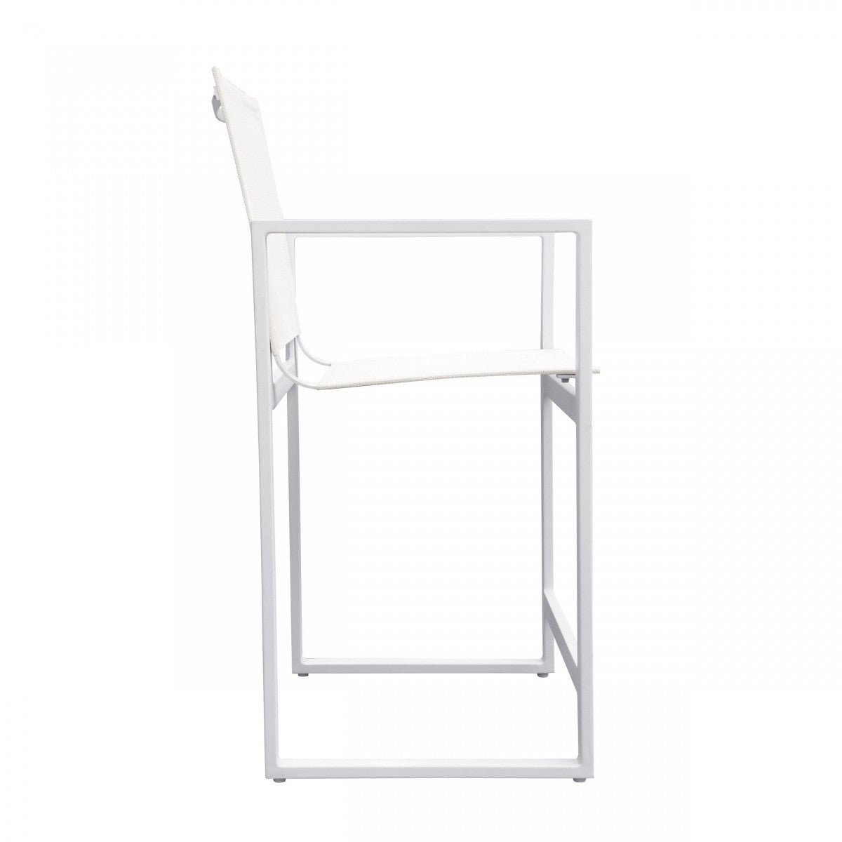 - Stylish and sturdy white on white metal and sling high top / bar height director chair.