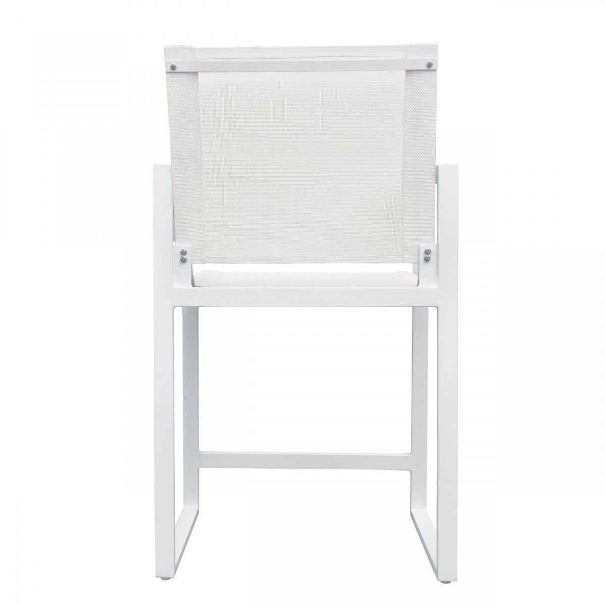 - Features a durable weather resistant white sling back and seat. No assembly is required.
