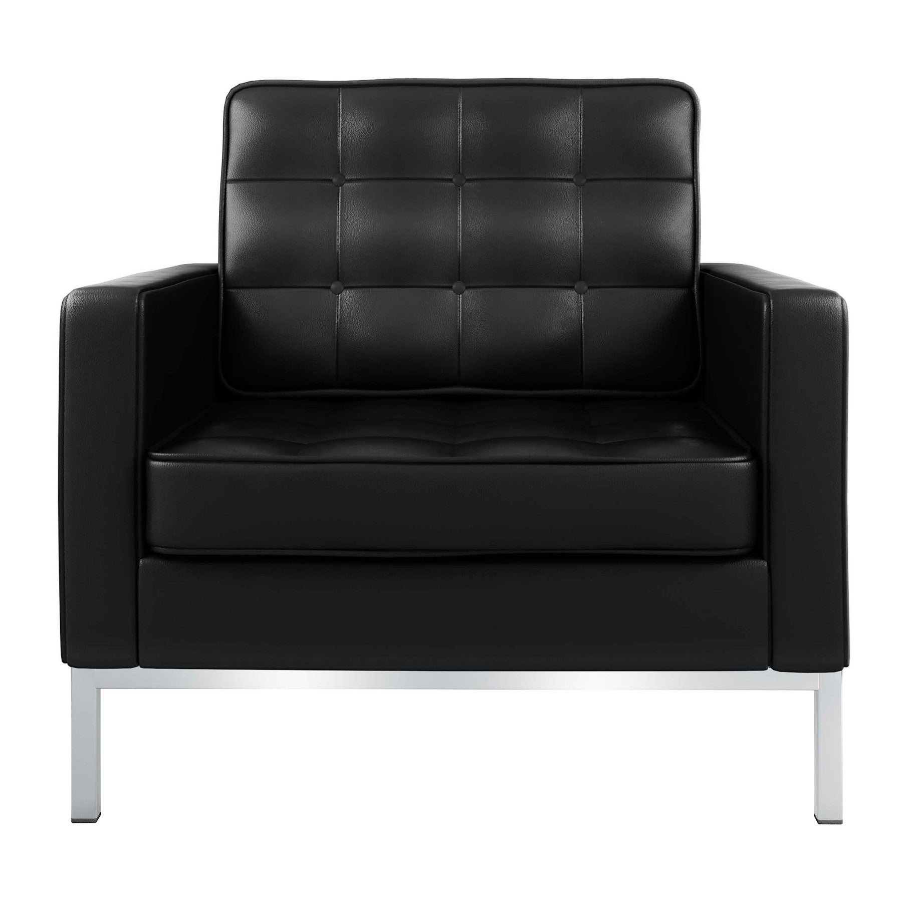 - Modern Button Tufted Genuine Leather Upholstered Arm Chair with Shiny Stainless Steel Legs.