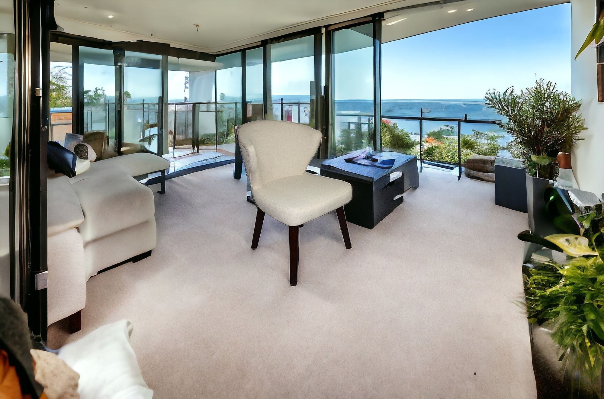- Cream-colored legs add a sophisticated finishing touch.