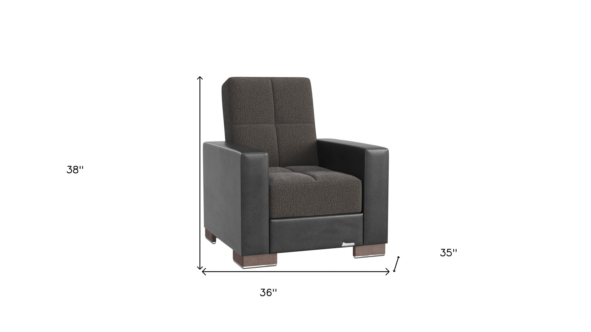 - Square arms with leather material for added comfort and style.