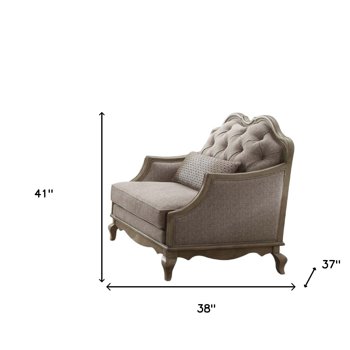 - Tufted stitching adds to the visual and textural delight of this chair.