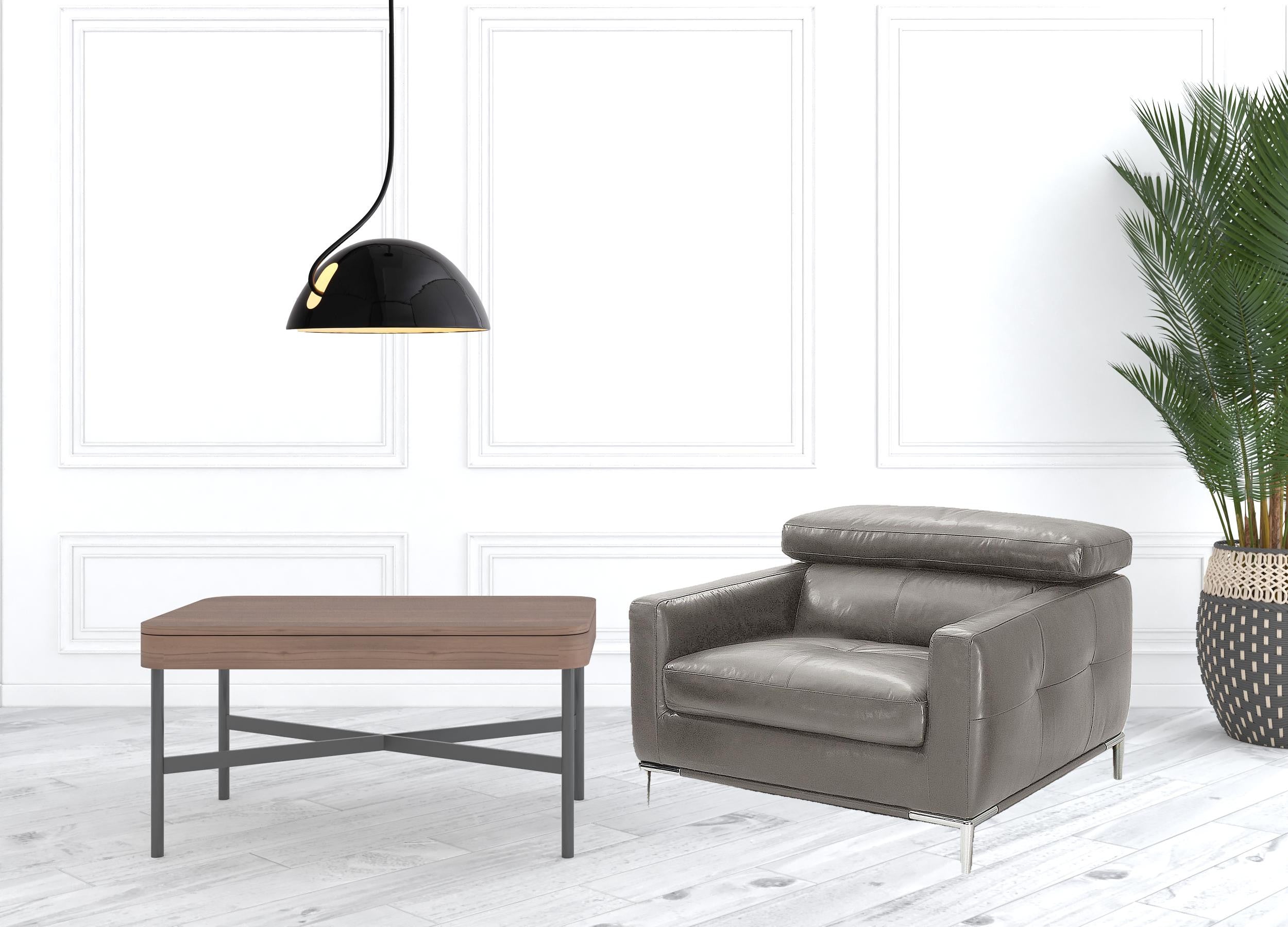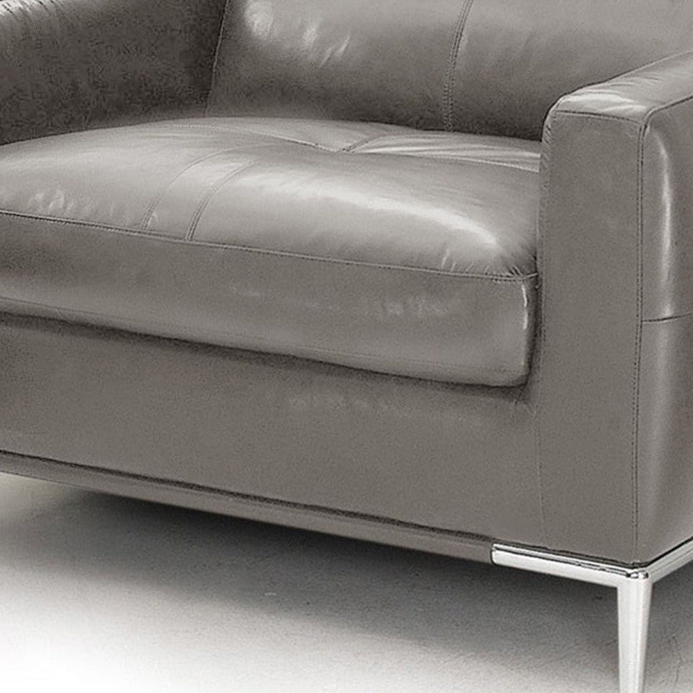 - Sleek silver legs and square arms add a modern touch.